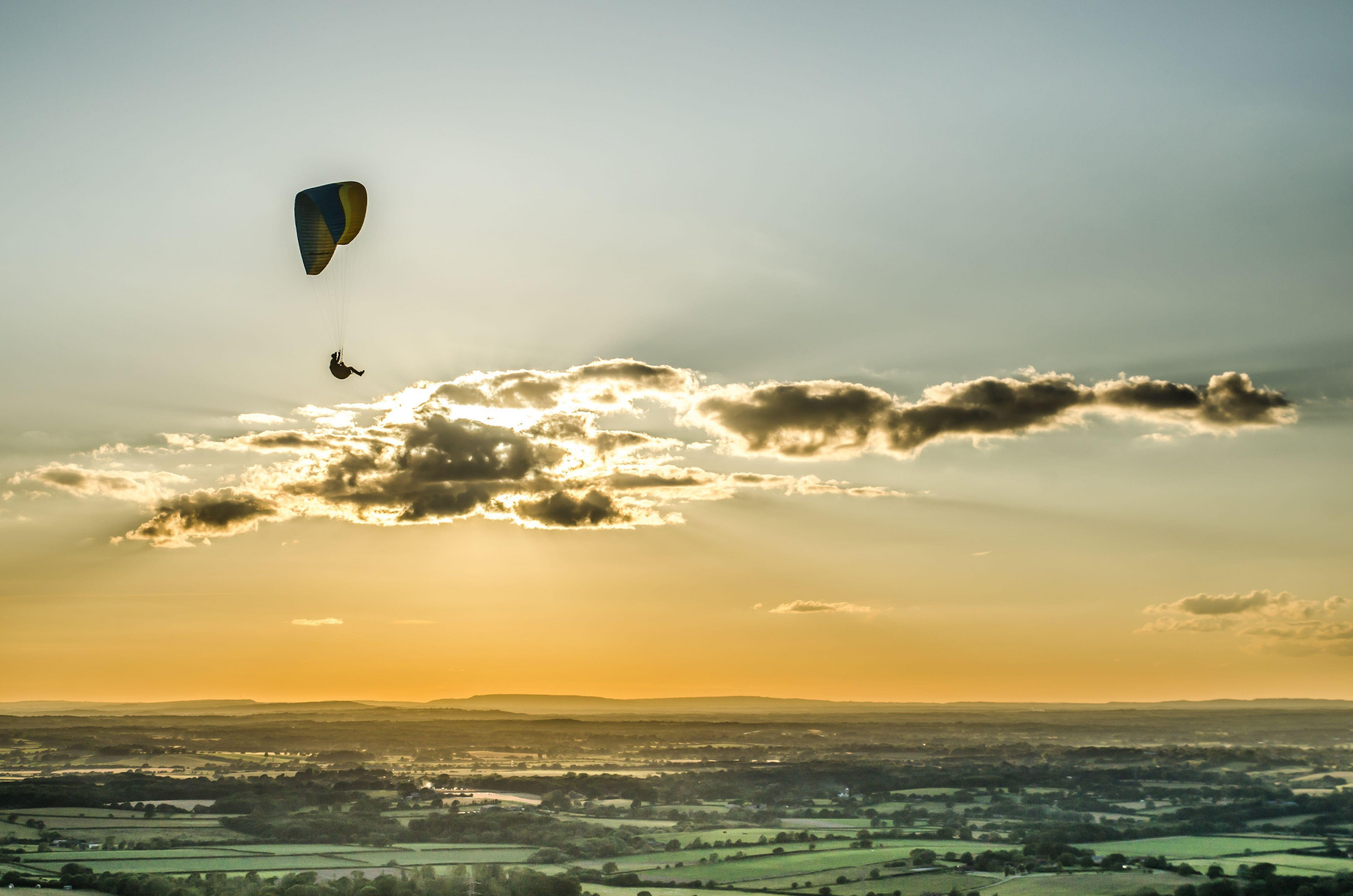 Paragliding at sunset on the South Downs, England in the first decade of June 2024. (Photo by David Burr/Alamy Live News)