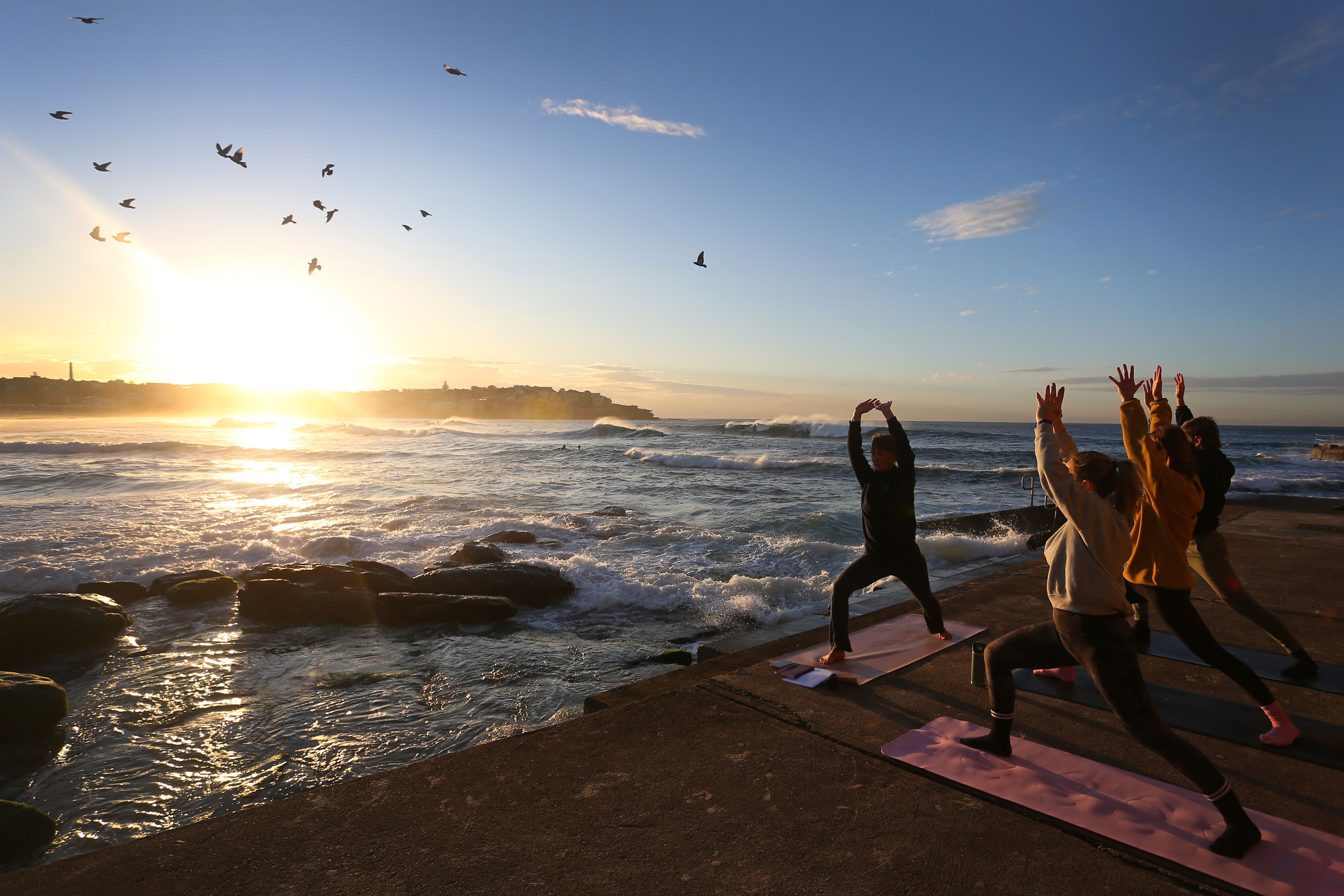 Instructor Romy Morssinkhof from “Yoga By The Sea” leads a free yoga session to celebrate International Day of Yoga and welcome the winter solstice at Bondi Beach on June 21, 2024 in Sydney, Australia. The International Day of Yoga is celebrated annually on June 21st to recognise the ancient Indian practice of yoga and promote its benefits for physical and mental well-being globally. June 21st also marks the winter solstice in the Southern Hemisphere, the shortest day of the year when the Earth's South Pole is tilted furthest away from the Sun. (Photo by Lisa Maree Williams/Getty Images)