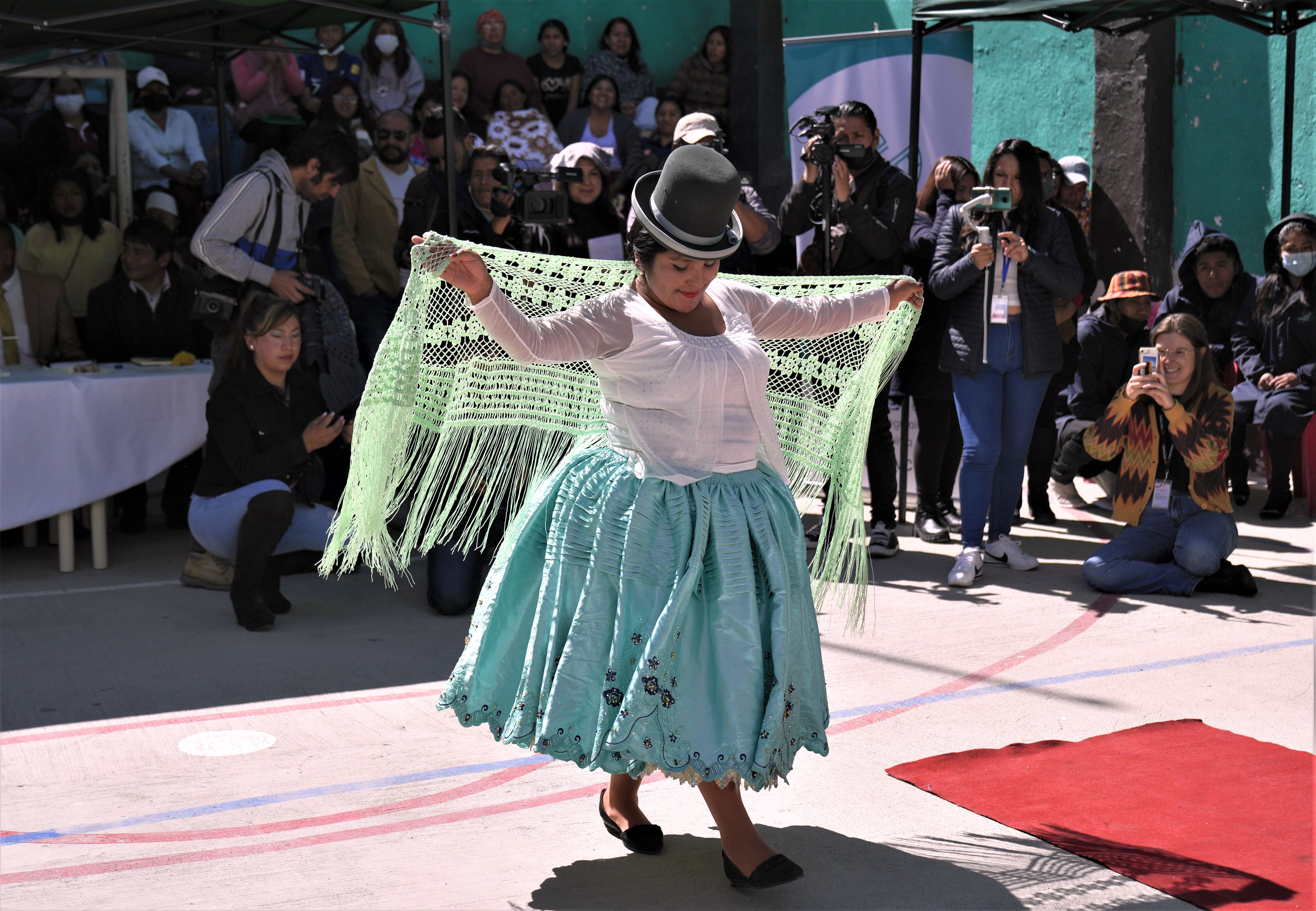 An inmate models a creation made by fellow inmates at a fashion show sponsored by the “Entrepreneurship for Freedom” program, at the Obrajes women's prison in La Paz, Bolivia, Tuesday, May 23, 2023. The fashion event showcased textiles and accessories produced by inmates. (Photo by Juan Karita/AP Photo)
