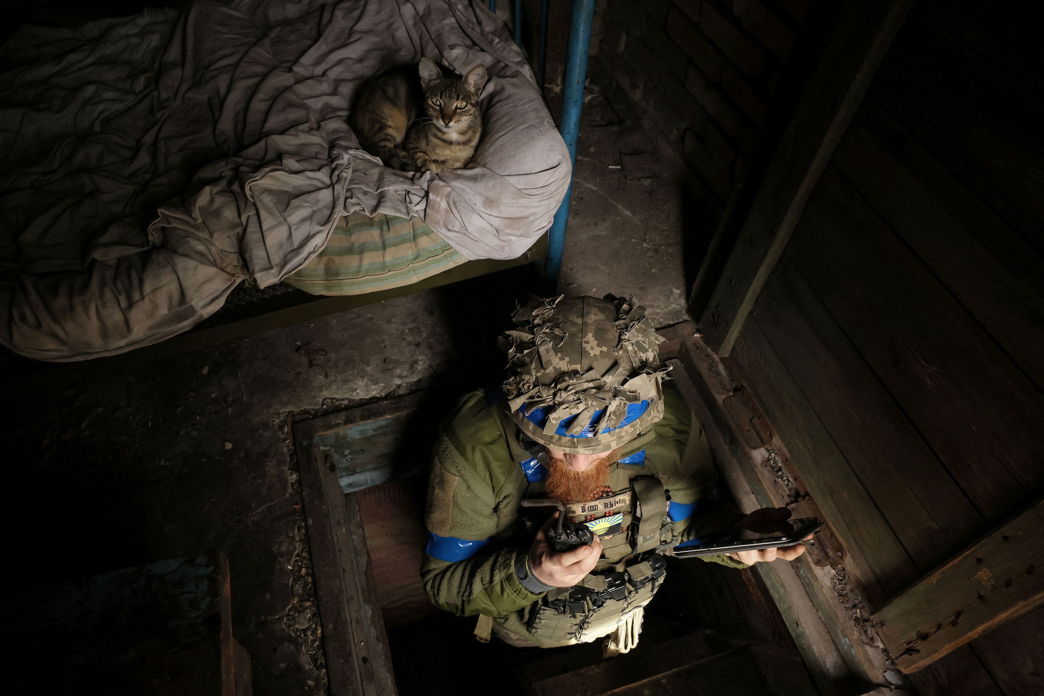 A Ukrainian serviceman talks on a radio at a front-line shelter near Chasiv Yar, Ukraine, on Tuesday, August 6, 2024. It has now been nearly two and a half years since Russia invaded Ukraine. (Photo by Oleg Petrasiuk/Press Service of the 24th King Danylo Separate Mechanized Brigade of the Ukrainian Armed Forces/Reuters)