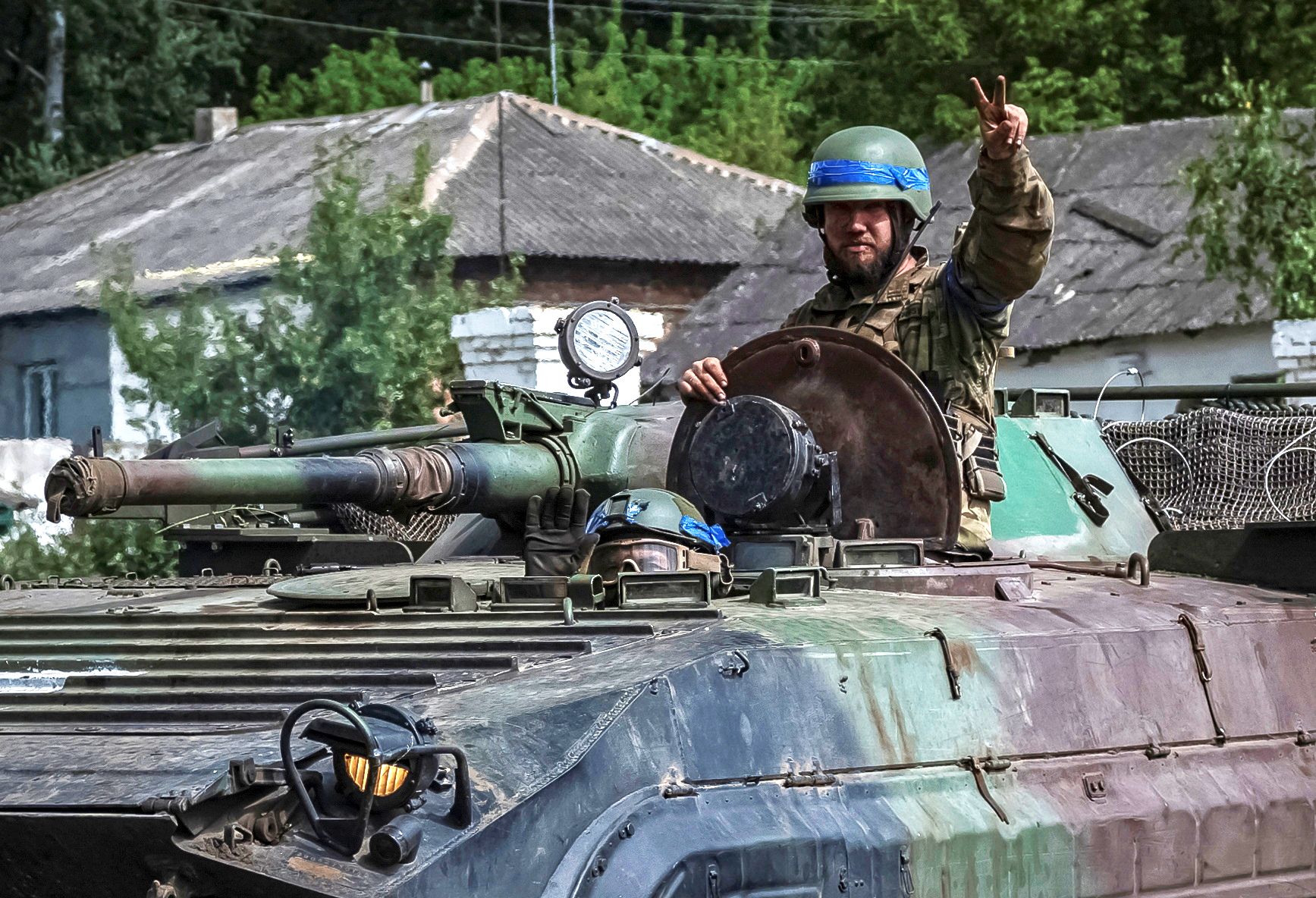 Ukrainian servicemen ride a BMP-1 infantry fighting vehicle, amid Russia's attack on Ukraine, near the Russian border in Sumy region, Ukraine on August 10, 2024. (Photo by Viacheslav Ratynskyi/Reuters)