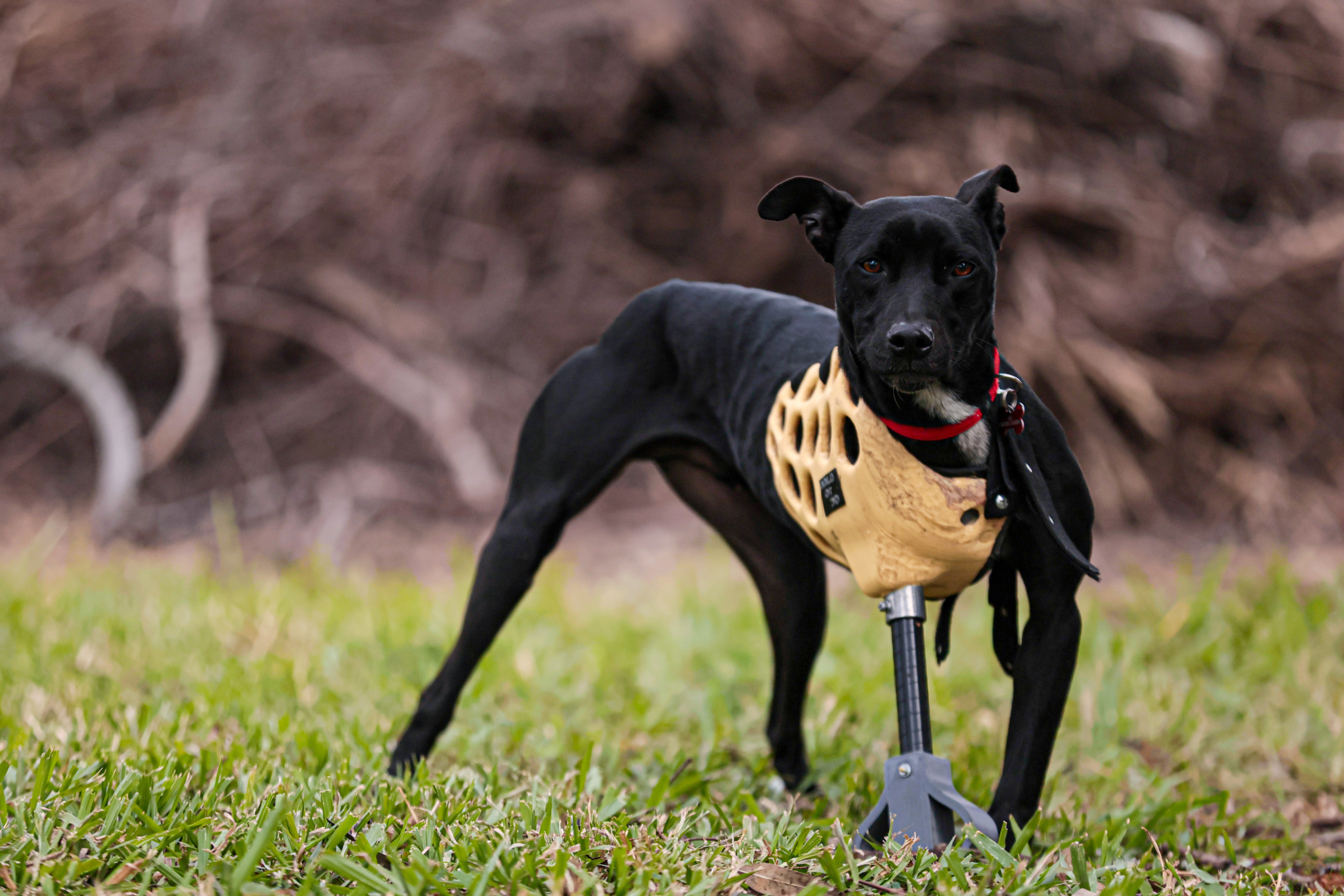 A view of the prosthesis that Nemo uses, Nemo is one of the happy clients of Mala Pata, Alexis' company in Buenos Aires, Argentina on July 20, 2024. Nemo lives on the outskirts of Buenos Aires, he was born with a rare liver disease and with an undeveloped paw, he was rescued along with his 4 brothers who were given up for adoption to different families, Natalia took care of Nemo and was in charge of buying a prosthesis to improve the dog's quality of life, today Nemo is learning to use his prosthesis. (Photo by Luciano Gonzalez/Anadolu via Getty Images)