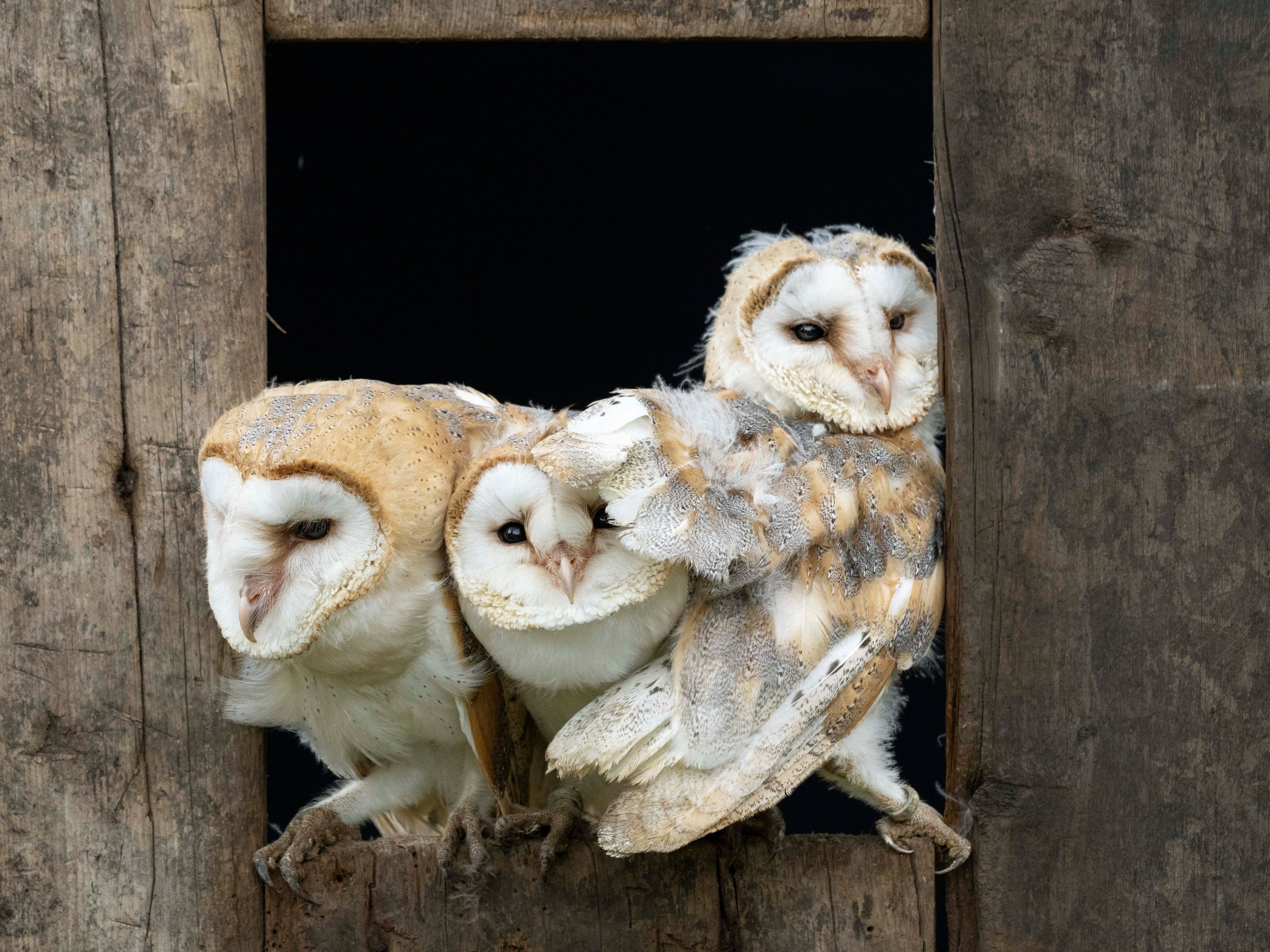 In Wigan, UK, barn owlets jostle for space as they wait for their mother, who hunts by sound rather than sight, to return with food in the second decade of August 2024. (Photo by Lesley Gooding/Animal News Agency)