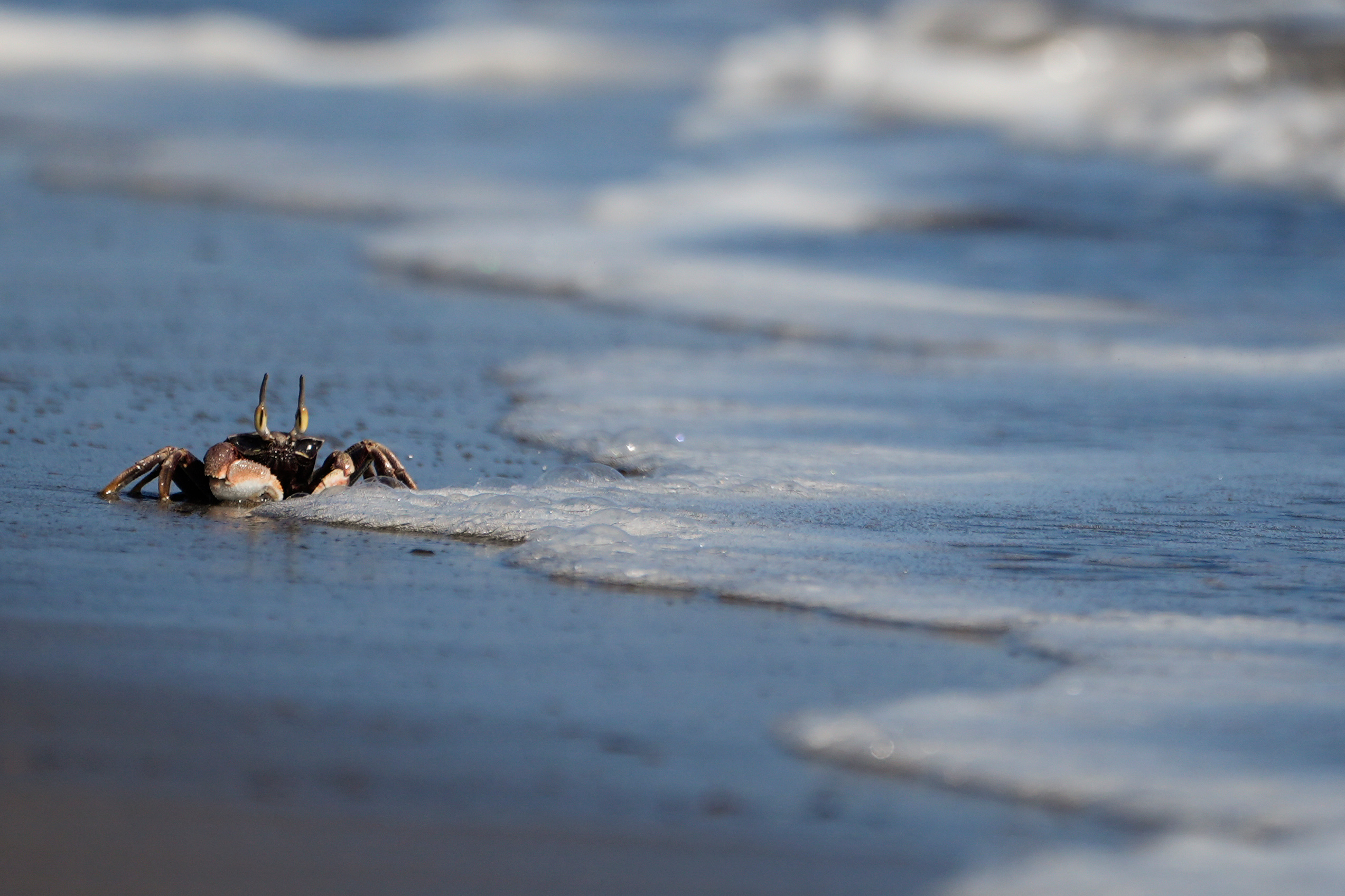 A ghost crab scuttles near the water on the beachfront property owned by Ekolu Lindsey, where his family has lived for five generations, Saturday, July 6, 2024, in Lahaina, Hawaii. Lindsey’s so familiar with the area he notices when more crabs are around or fish are undersized. He has brought school groups there to teach them about the coral, seaweed and the ocean. (Photo by Lindsey Wasson/AP Photo)