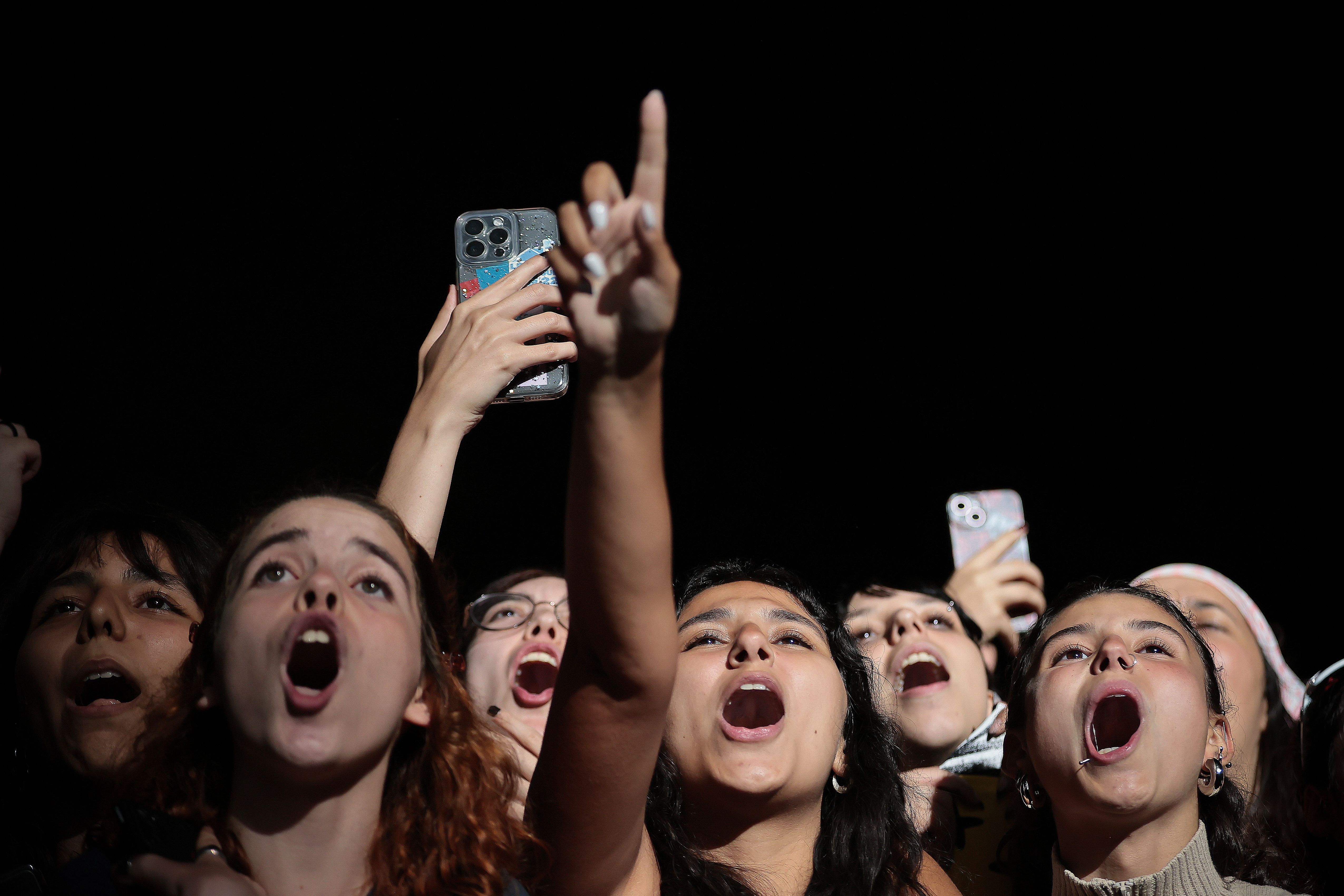 Festival goers react during the last day of Mares Vivas Festival 2024 in Vila Nova de Gaia, Portugal, 21 July 2024. (Photo by Manuel Fernando Araujo/EPA/EFE)