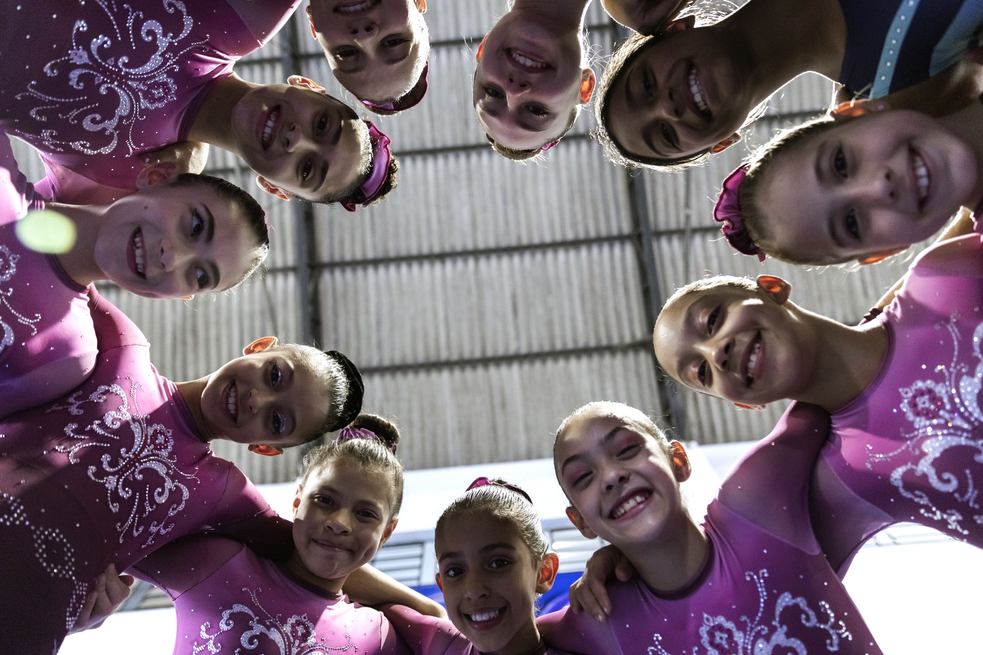 Gymnasts pose for a photo at Bonifacio Cardoso gymnasium, where Olympic medalist Rebeca Andrade trained as a child in her hometown of Guarulhos, Sao Paulo, Brazil, Tuesday, August 6, 2024. (Photo by Tuane Fernandes/AP Photo)