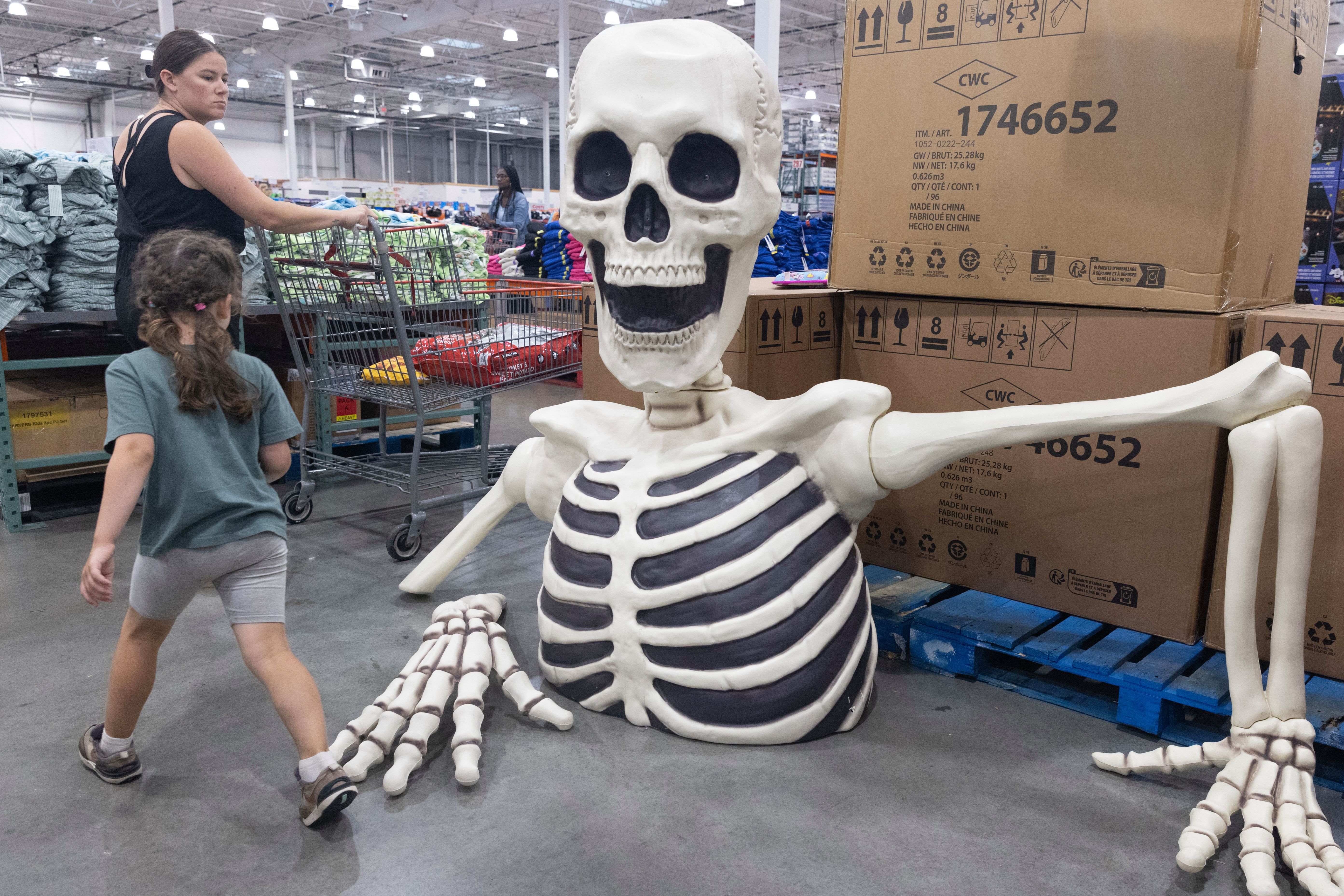 Customers walk past Halloween decorations for sale at a Costco store in Washington, DC, USA, 08 August 2024. New data released by the US department of labor showing a drop in new unemployment claims drove the S&P 500 to advance 2.3 percent – posting its best day since 2022. (Photo by Michael Reynolds/EPA/EFE)