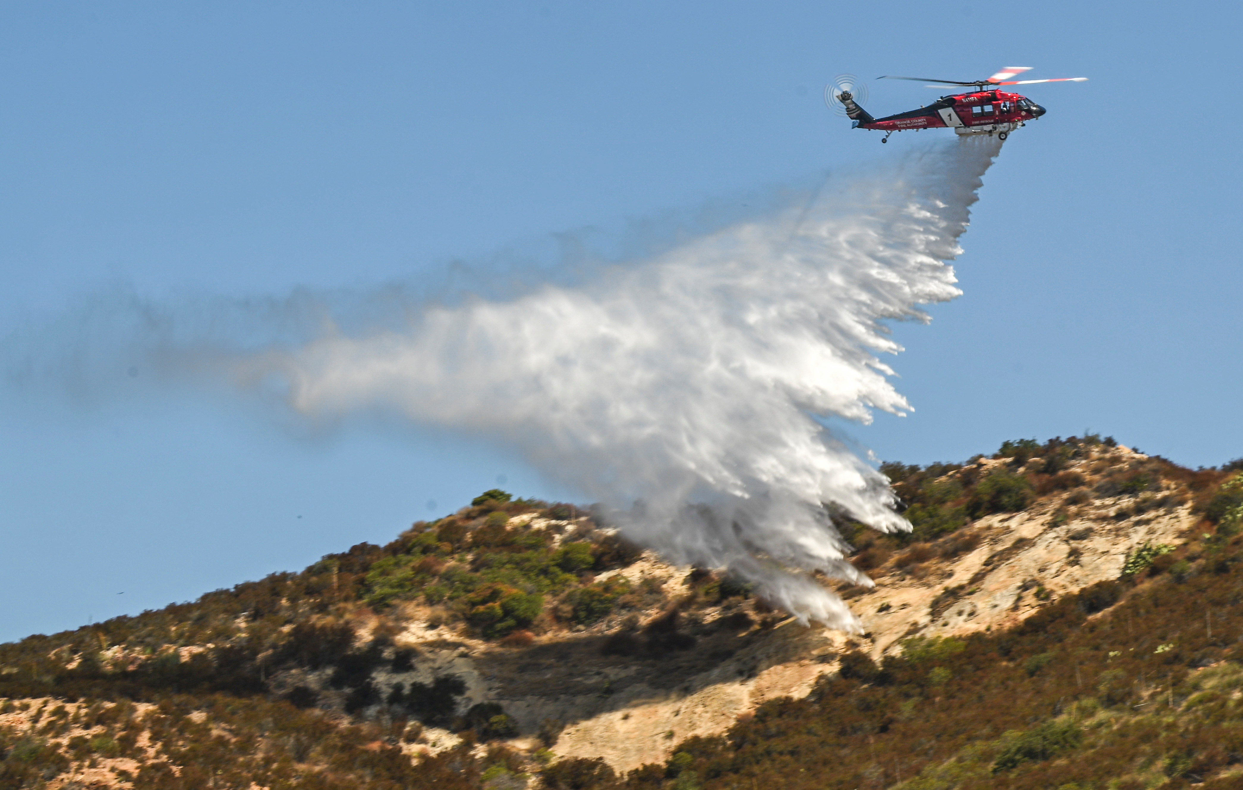 The Orange County fire authority demonstrates its new S70 Firehawk helicopter during a media event in Silverado, California on August 19, 2024. (Photo by Jeff Gritchen/AP Photo)