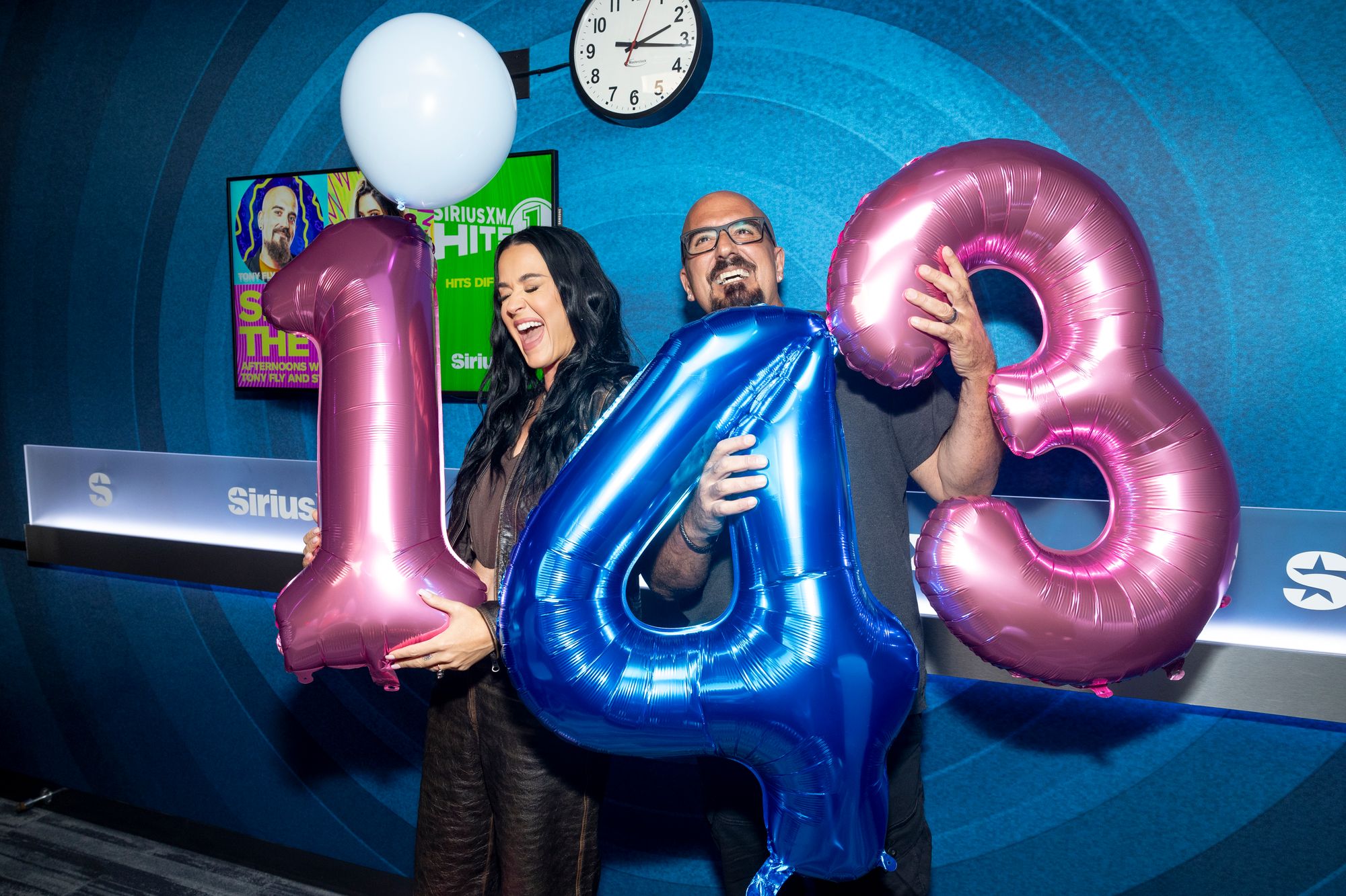 American singer-songwriter Katy Perry and Tony Fly visit the SiriusXM studios on August 19, 2024 in Los Angeles, California. (Photo by Emma McIntyre/Getty Images for SiriusXM)