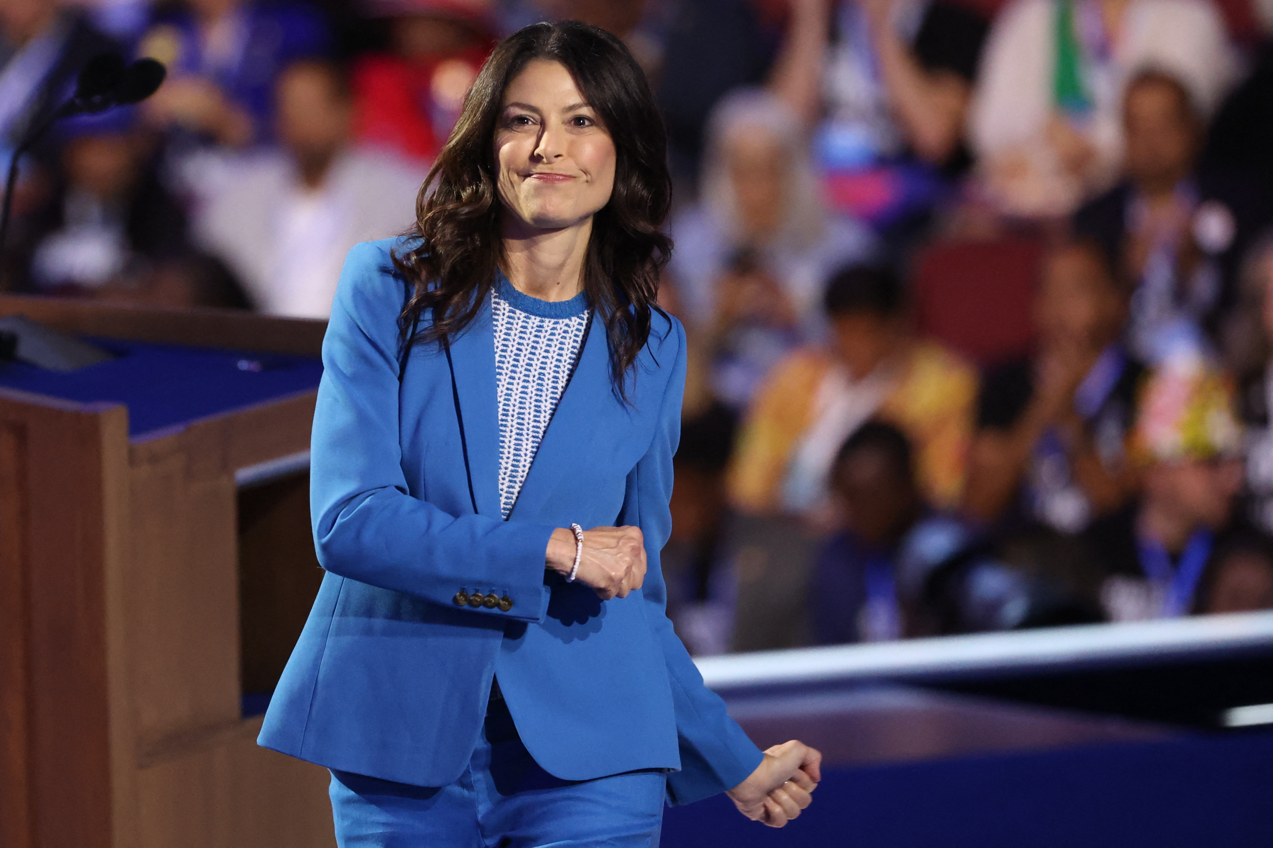 Dana Nessel, Attorney General of Michigan, reacts onstage on Day 3 of the Democratic National Convention (DNC) in Chicago, Illinois, U.S., August 21, 2024. (Photo by Brendan Mcdermid/Reuters)