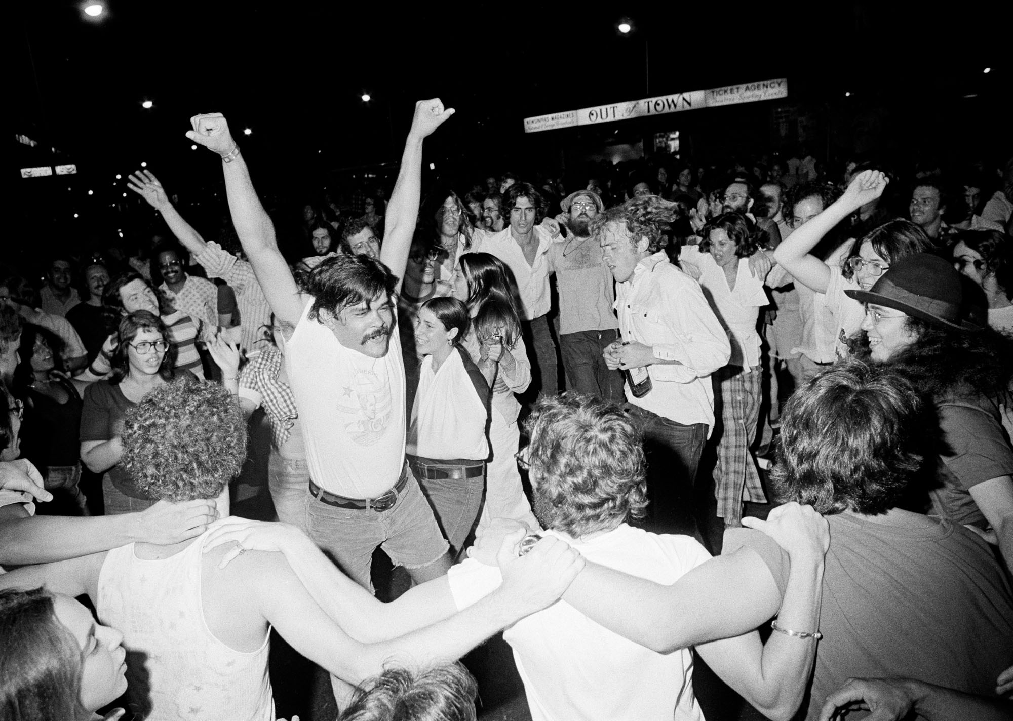 People dance in the streets of Harvard Square in Cambridge, August 9, 1974, following the resignation of Pres. Nixon on television. More than a thousand persons participated in the demonstration. (Photo by Peter Bregg/AP Photo)