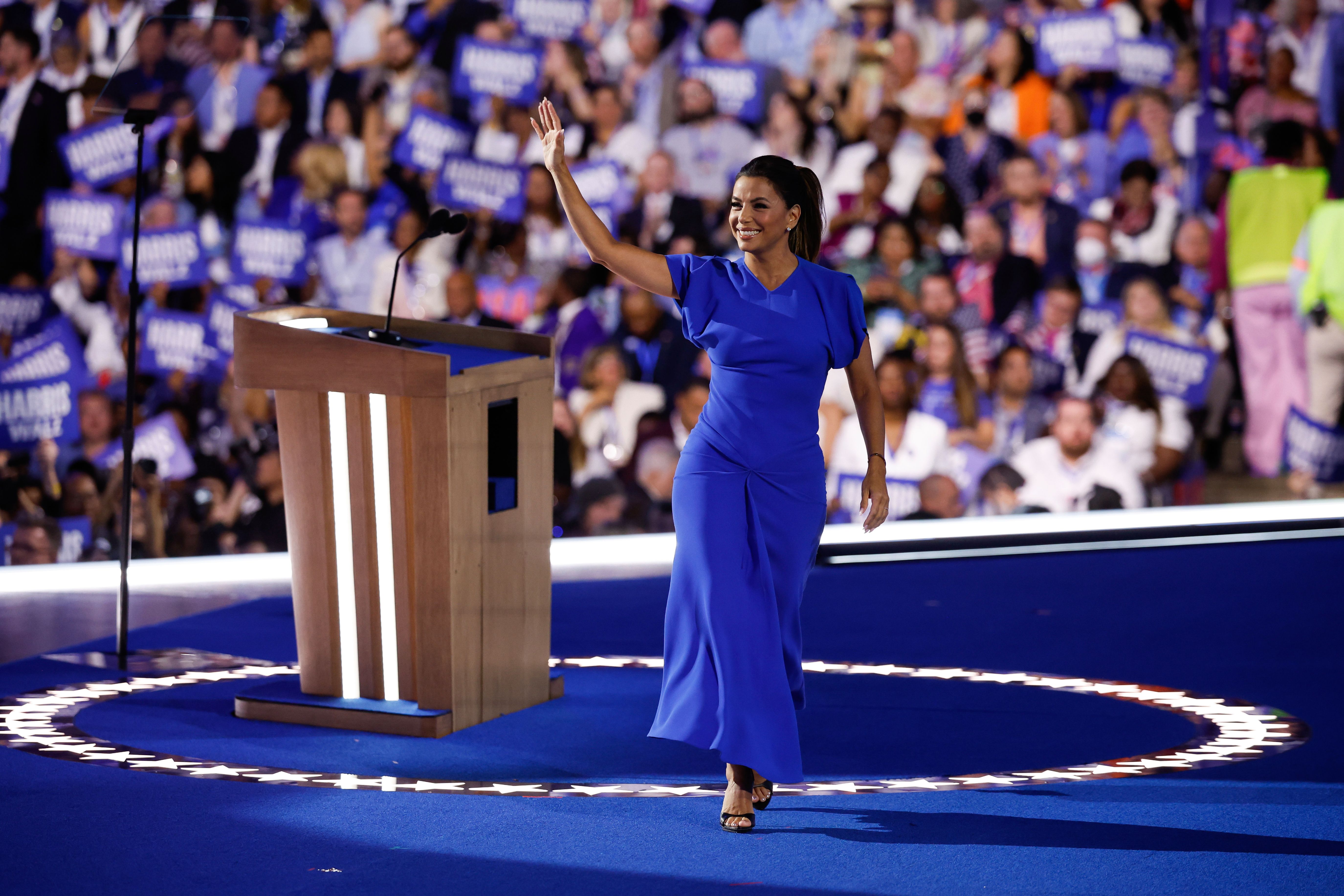 Actress Eva Longoria speaks onstage during the final day of the Democratic National Convention at the United Center on August 22, 2024 in Chicago, Illinois. Delegates, politicians, and Democratic Party supporters are gathering in Chicago, as current Vice President Kamala Harris is named her party's presidential nominee. The DNC takes place from August 19-22. (Photo by Kevin Dietsch/Getty Images)