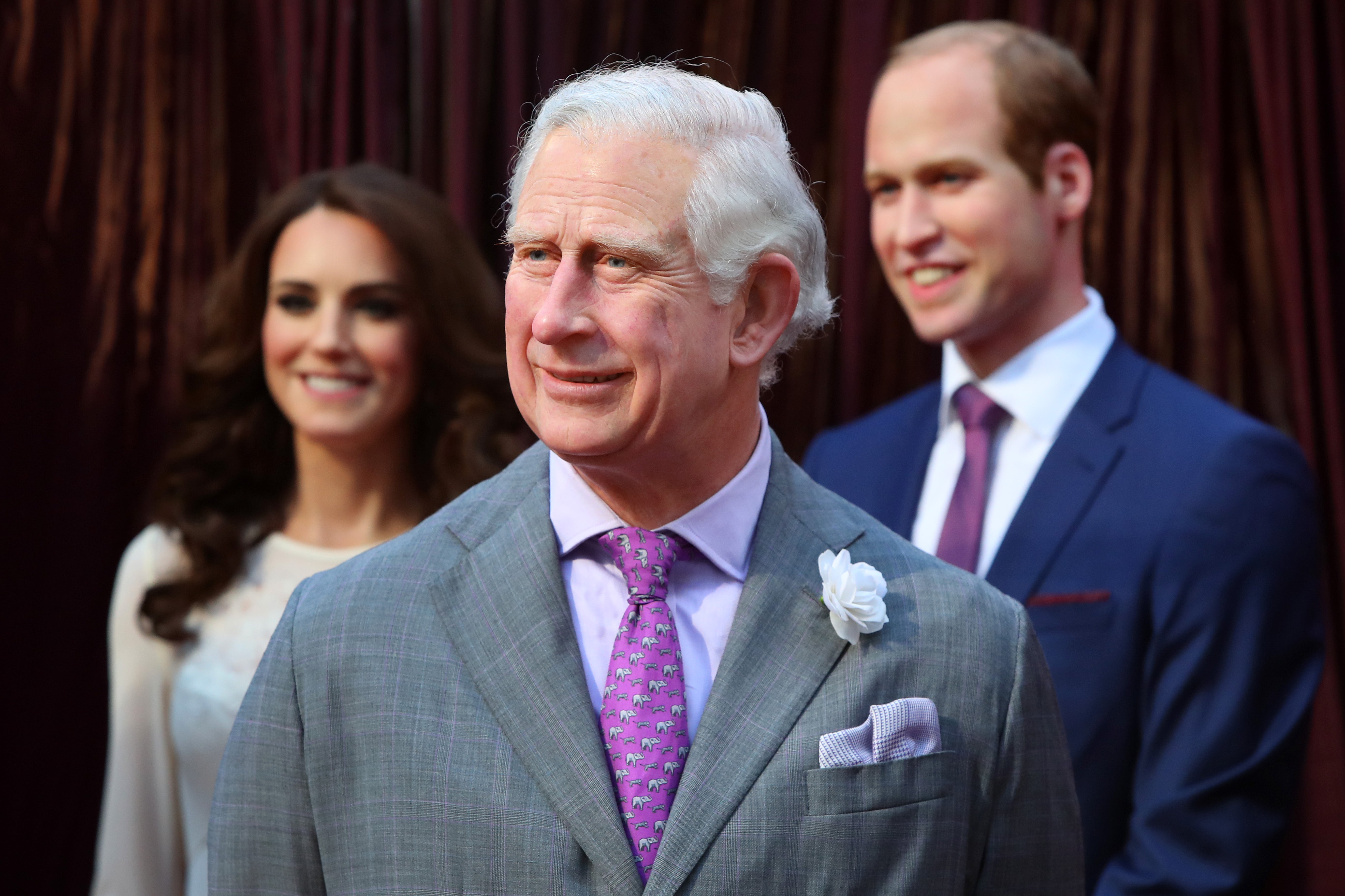 The wax figures of Catherine the Princess of Wales, Prince William and King Charles III are seen during the unveiling of Madame Tussauds Sydney's wax figure of King Charles III on May 03, 2023 in Sydney, Australia. Australia's first King Charles III wax figure was announced by a town crier during a ceremony at the Queen Victoria Building in Sydney. Guests including the wax Prince and Princess of Wales were entertained with a changing-of-the-guards show and performance from Sydney Bagpipers. (Photo by Lisa Maree Williams/Getty Images)