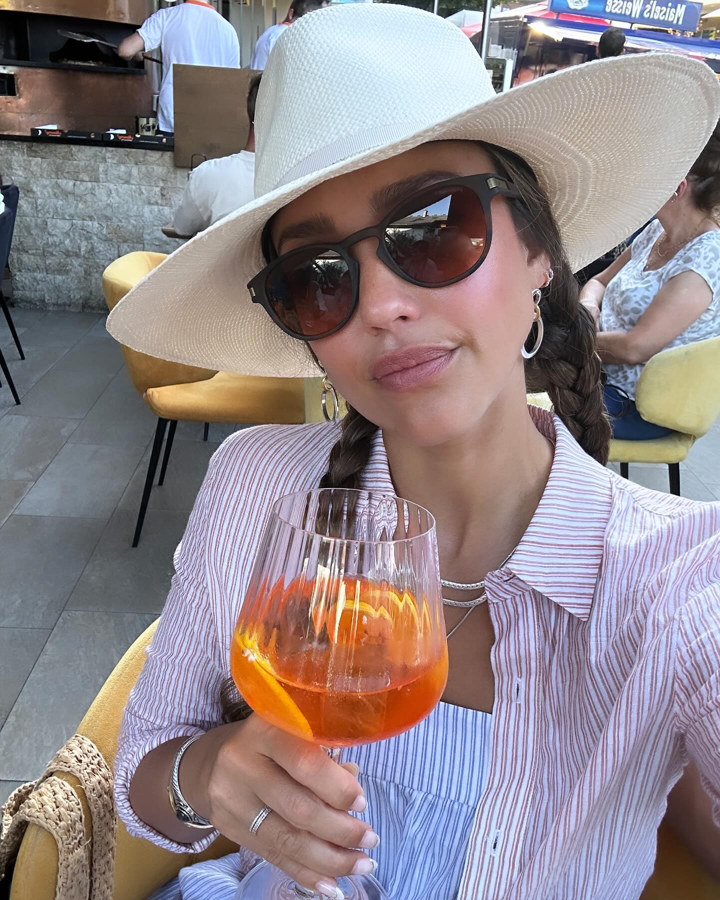 American actress Jessica Alba enjoys a spritz in Austria in the second decade of August 2024. (Photo by jessicaalba/Instagram)