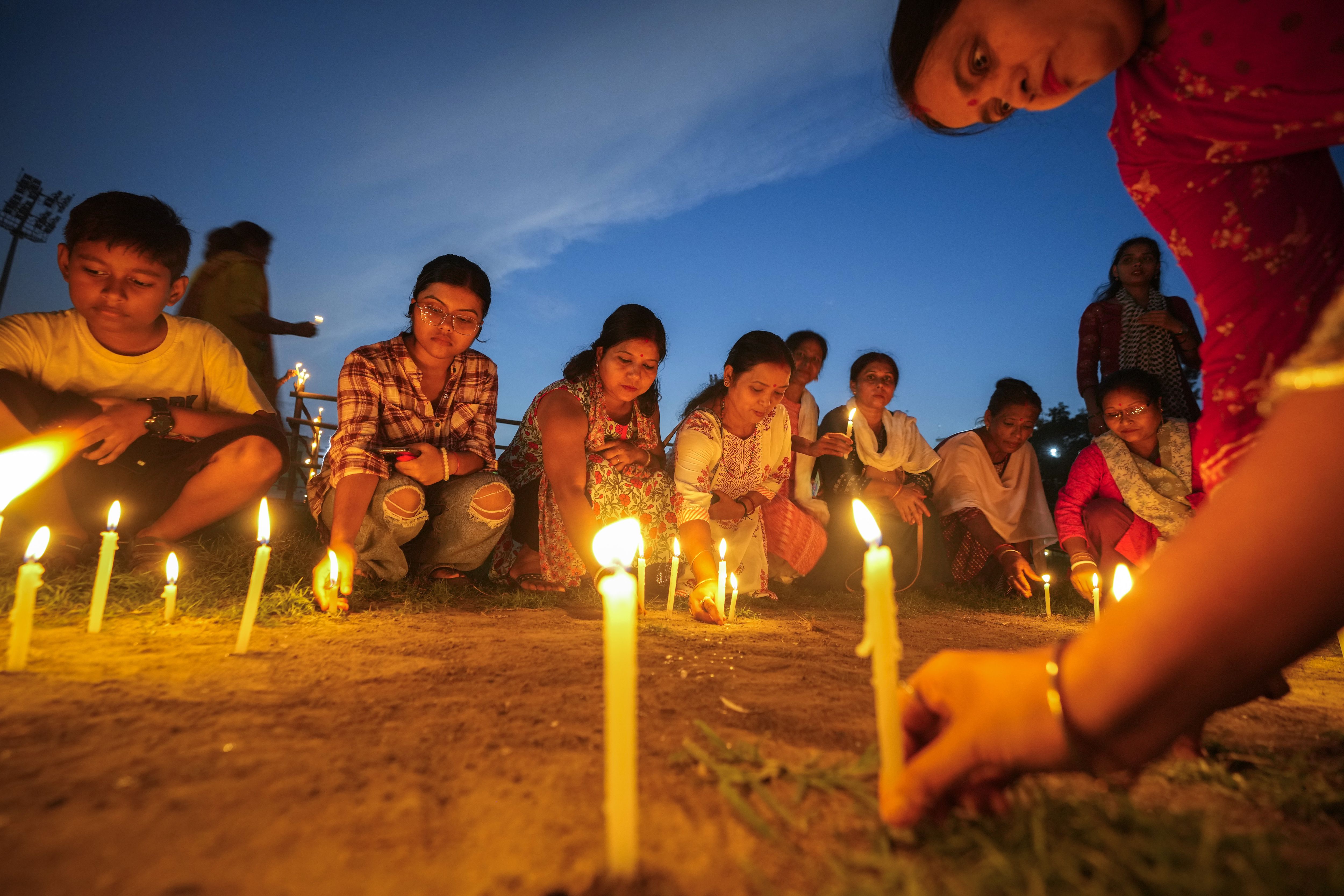 Women light candles as they stage a silent protest against the rape and killing of a trainee doctor at a government hospital last week, in Guwahati, India, Friday, August 16, 2024. (Photo by Anupam Nath/AP Photo)