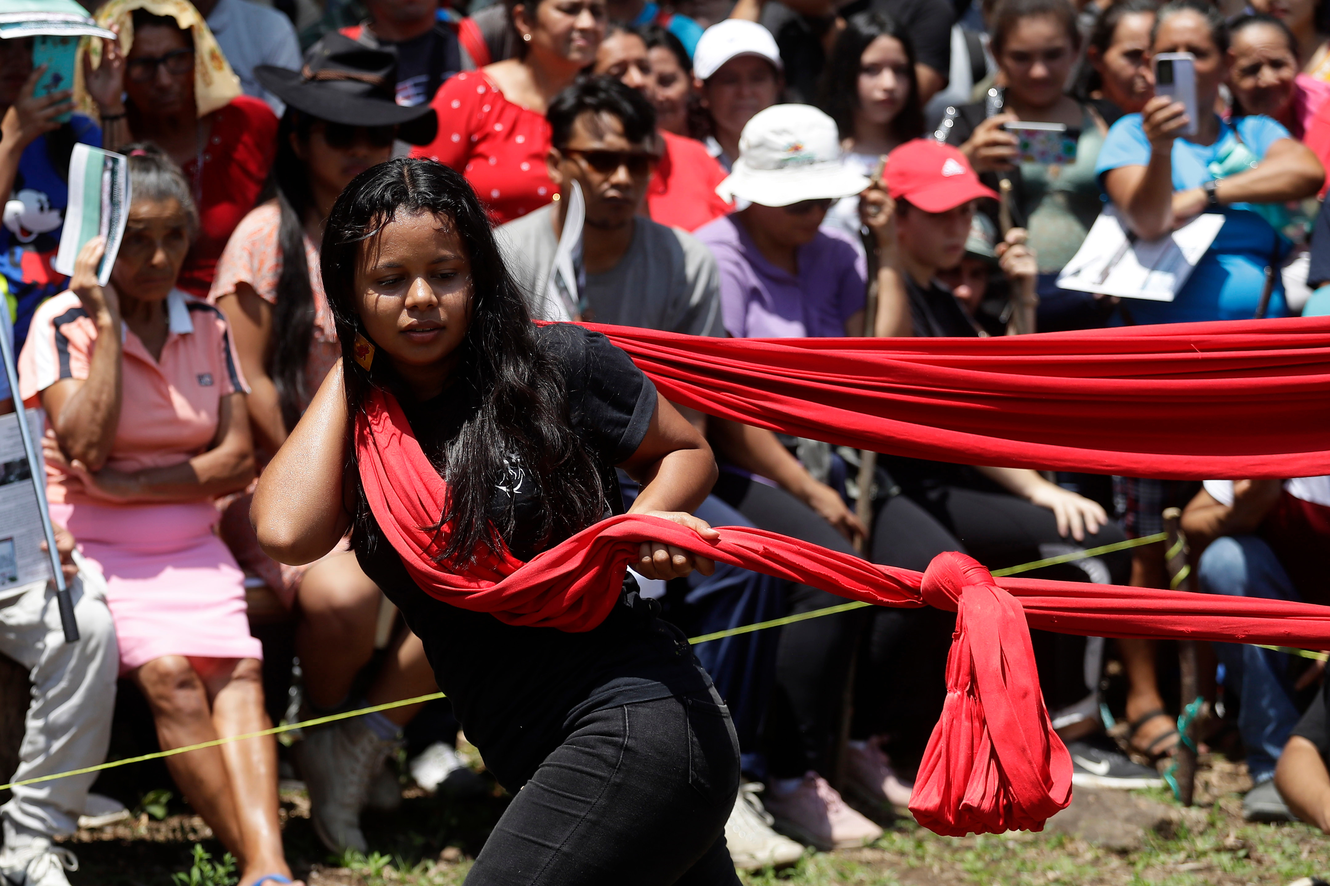 Young people perform a popular theater show dedicated to the victims of the El Sumpul Massacre committed by the Salvadoran army in 1980 during a commemorative act in Ojos de Agua, El Salvador on May 14, 2023. Young supporters and survivors of the massacre of Sumpul, in which more than 600 people were murdered by the Salvadoran Army, commemorated the 43rd anniversary of the event, which has not been investigated nor is there a criminal process to make those responsible known. (Photo by Rodrigo Sura/EPA/EFE)