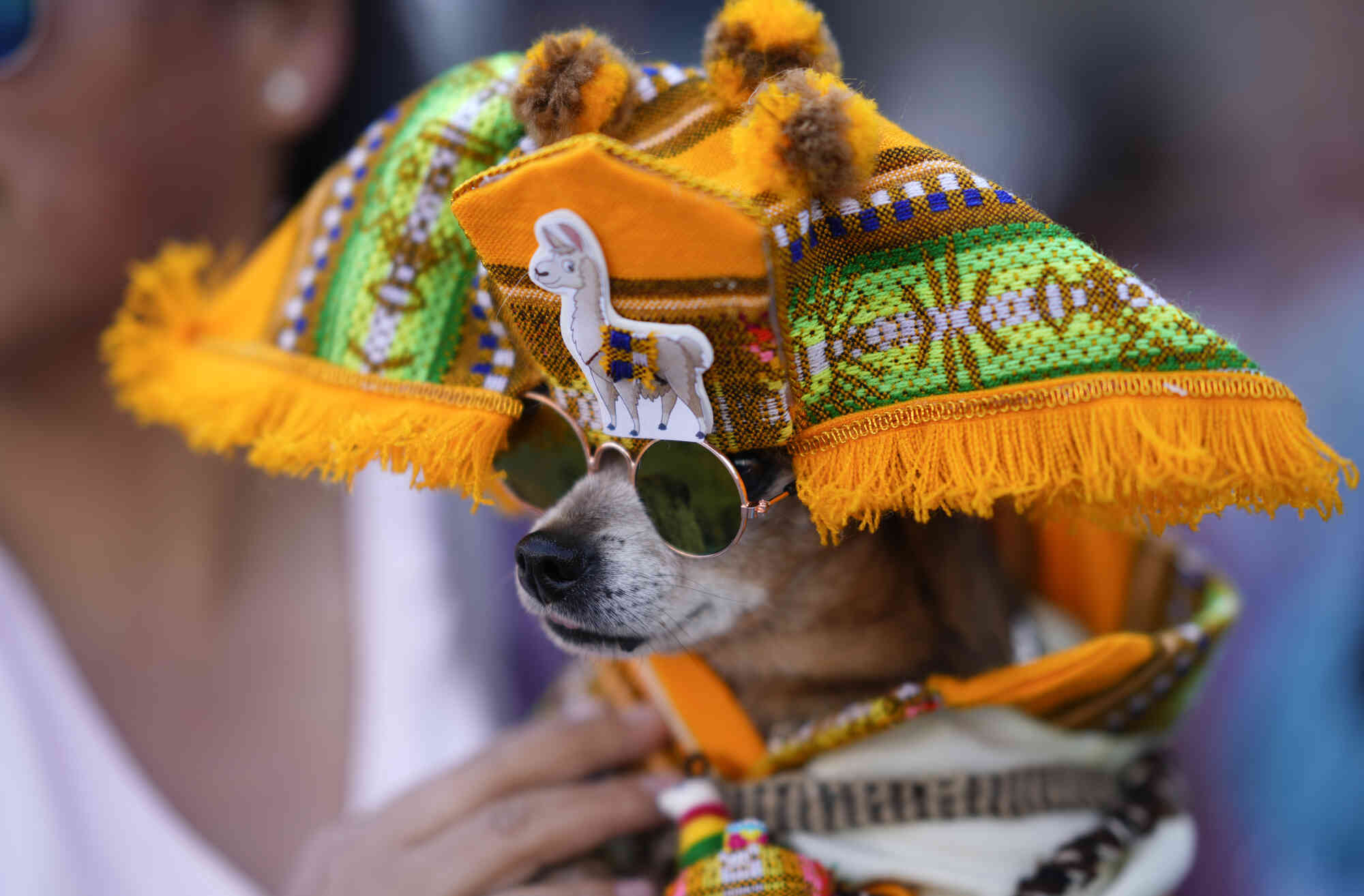 A dog wearing a Llamerada costume competes in a costume contest celebrating the feast day of Saint Roch, the patron saint of dogs, in La Paz, Bolivia, Sunday, August 18, 2024. (Photo by Juan Karita/AP Photo)