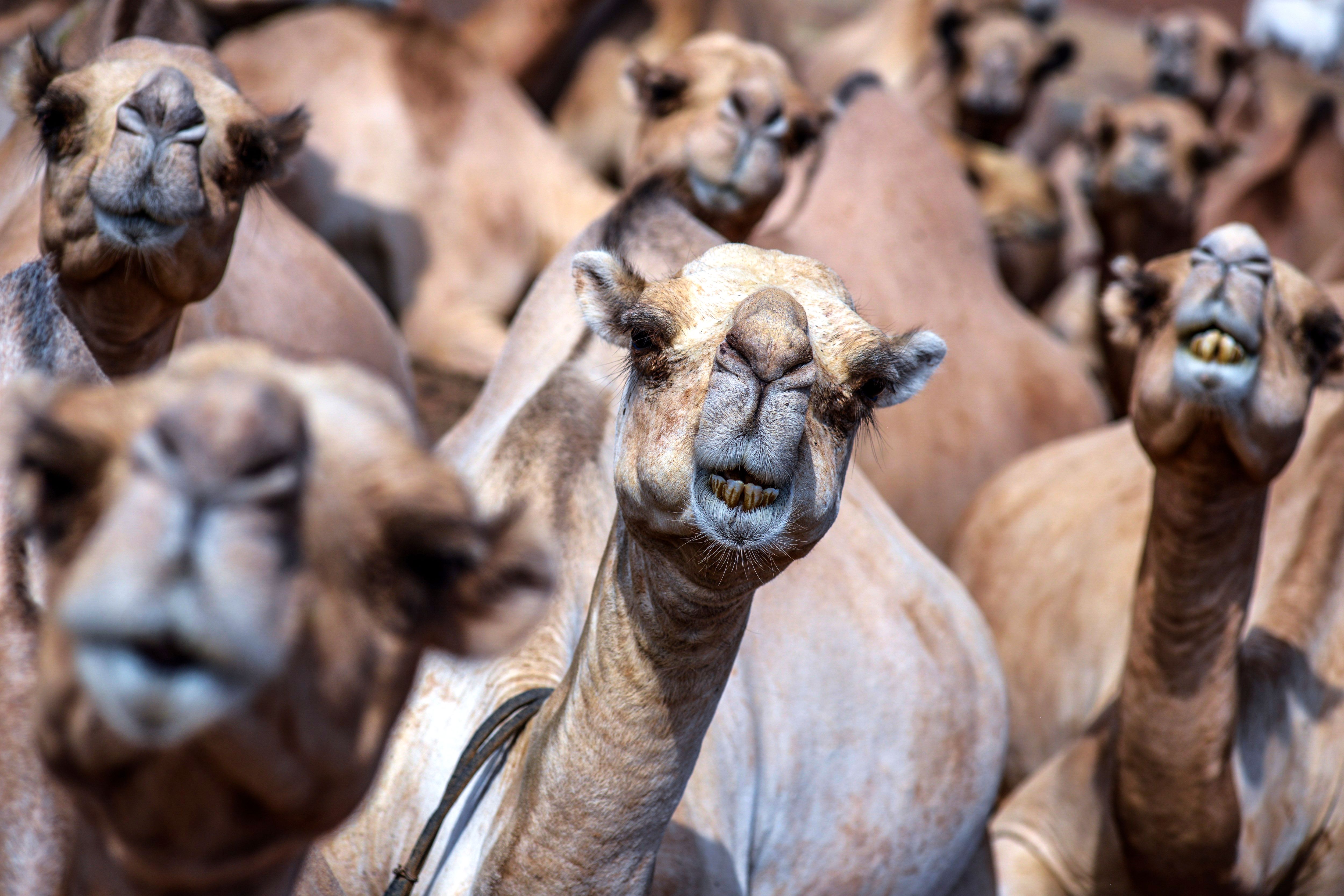Camels are seen as the Rendille people, a nomadic-pastoralist community living in the country's arid northern regions, continues to maintain their traditional lifestyle in Kargi village, located in Kenya's Marsabit County, on August 27, 2024. The Rendille people sustain their livelihoods through the herding of camels, cattle, sheep, and goats. Known for their expertise in animal husbandry, the Rendille are often referred to as 'Holders of the Stick of God' and are also noted for their colorful traditional clothing and jewelry. (Photo by Gerald Anderson/Anadolu via Getty Images)