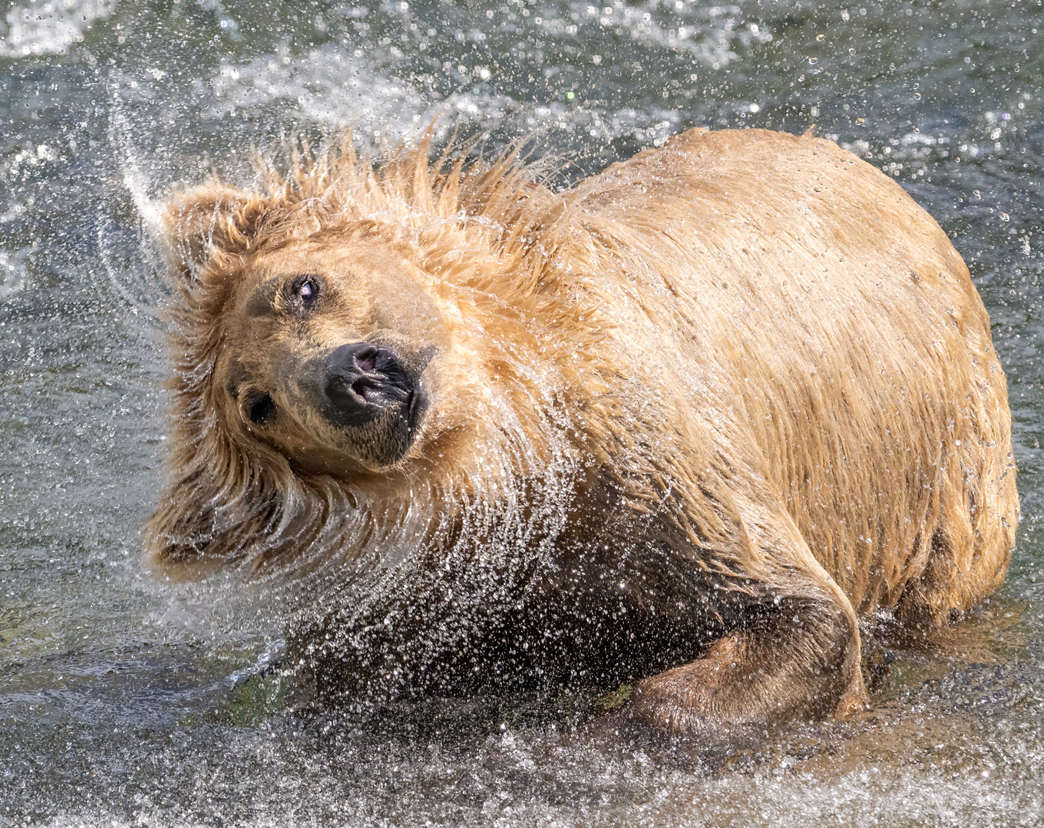 In between hunting for salmon on their annual run upstream from the ocean to gravel beds to lay eggs, bears shake the water off their fur, at Katami National Park in Alaska, US in the last decade of August 2024. (Photo by Wei Lian/Solent News)