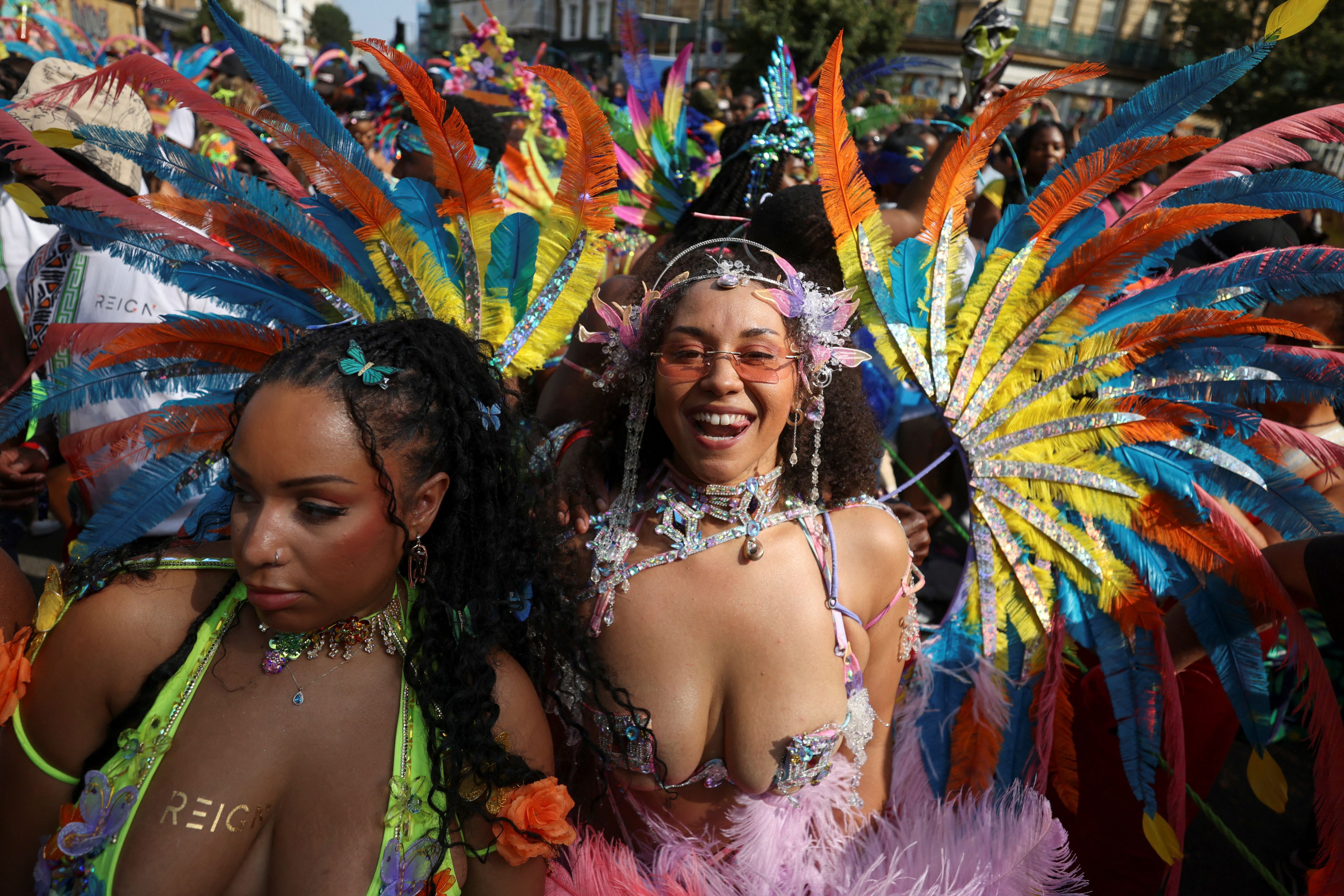 Revellers participate in the Notting Hill Carnival parade, in London, Britain on August 26, 2024. (Photo by Hollie Adams/Reuters)