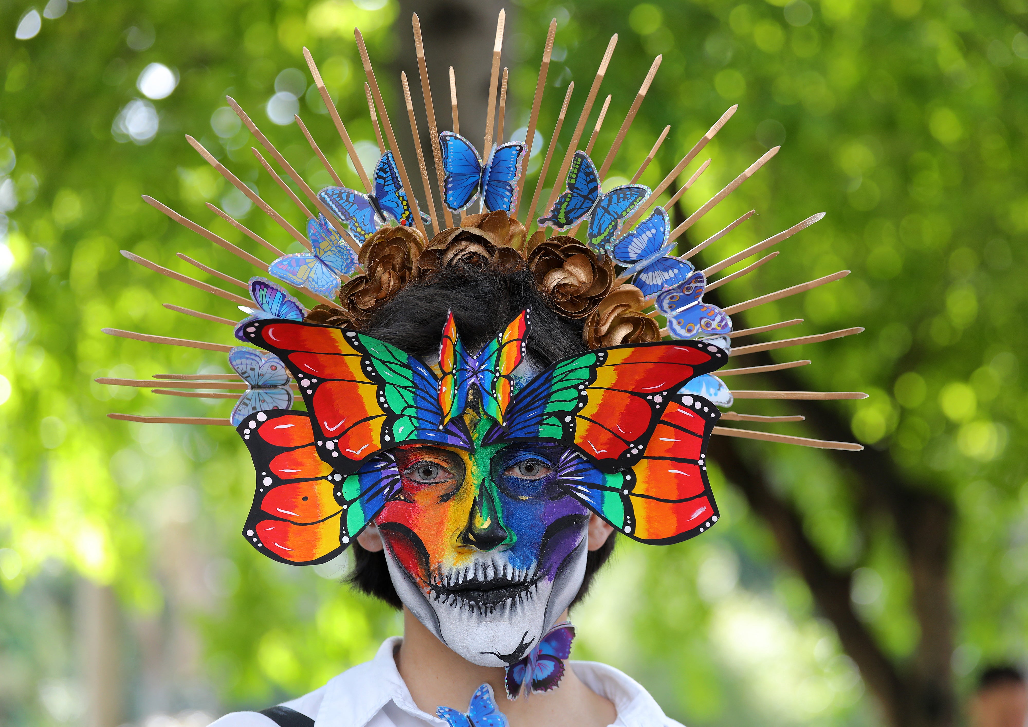 A supporter of the Lesbian, Gay, Bisexual and Transgender (LGBT+) community participates in the Pride parade in the city of Medellin, Colombia, on June 30, 2024. (Photo by Jaime Saldarriaga/AFP Photo)