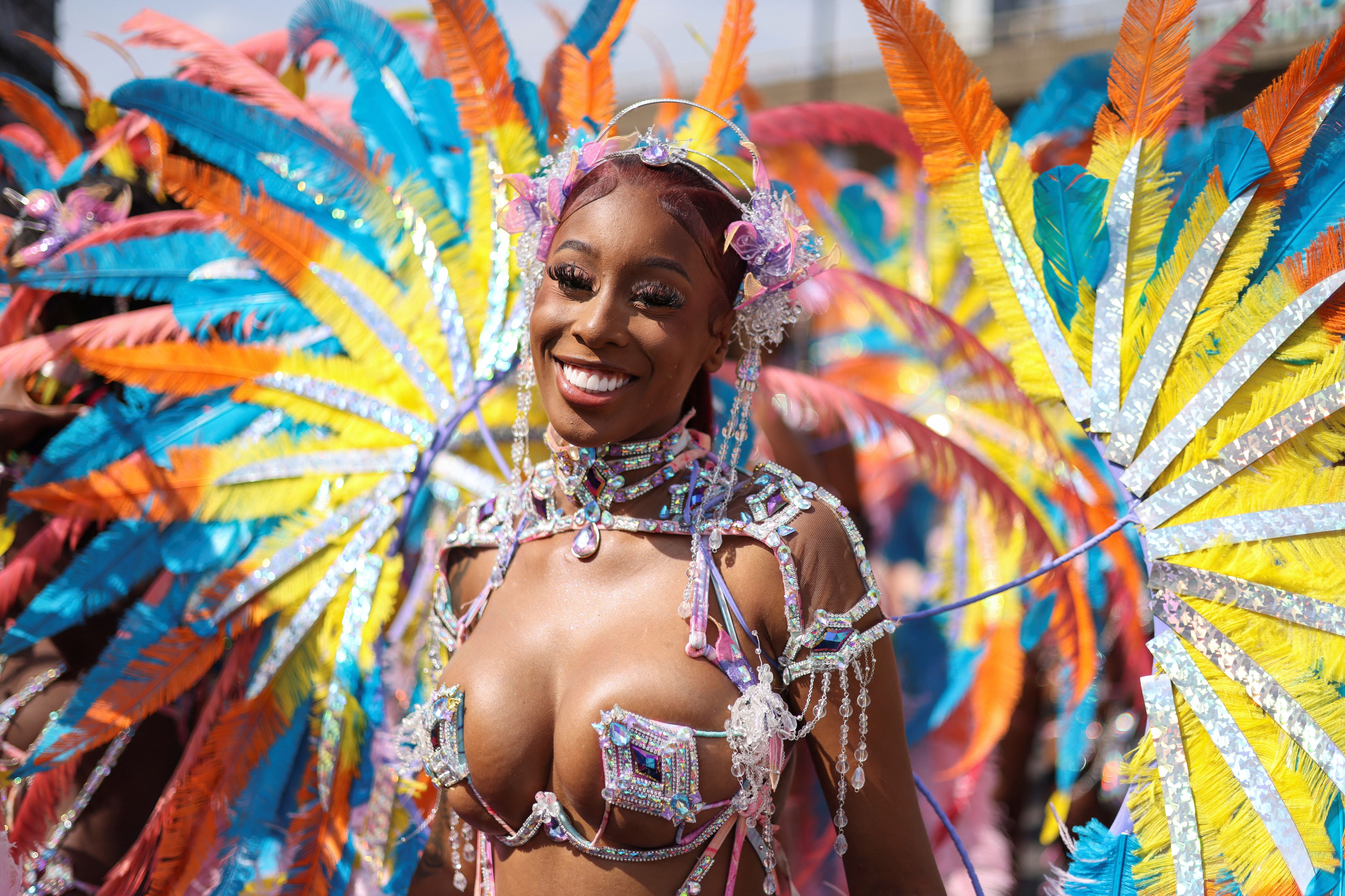 A reveller participates in the Notting Hill Carnival parade, in London, Britain on August 26, 2024. (Photo by Hollie Adams/Reuters)