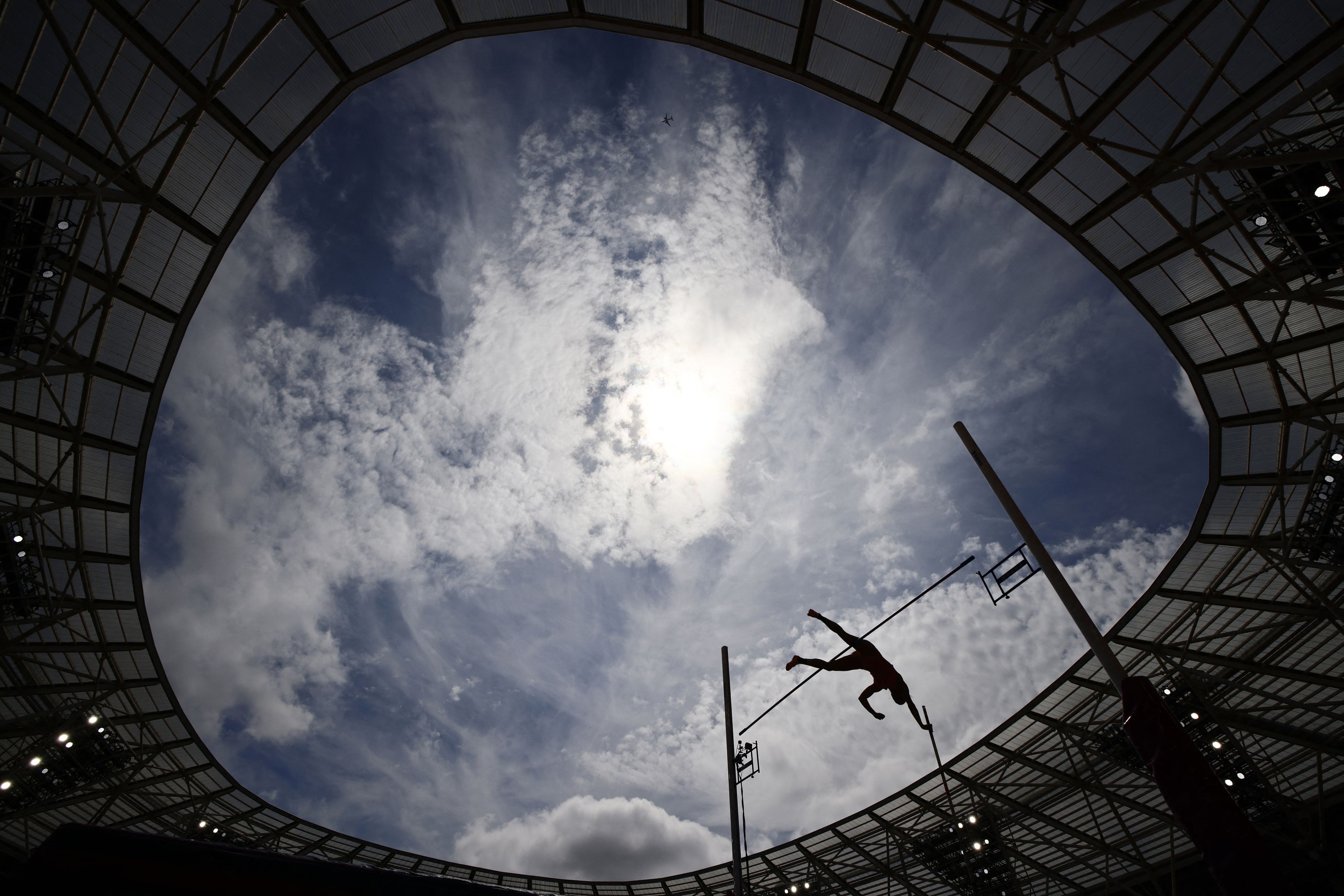 Australia's Nina Kennedy competes in the Women's pole vault event during the IAAF Diamond League athletics meeting at the London stadium in London on July 20, 2024. (Photo by Benjamin Cremel/AFP Phoot)