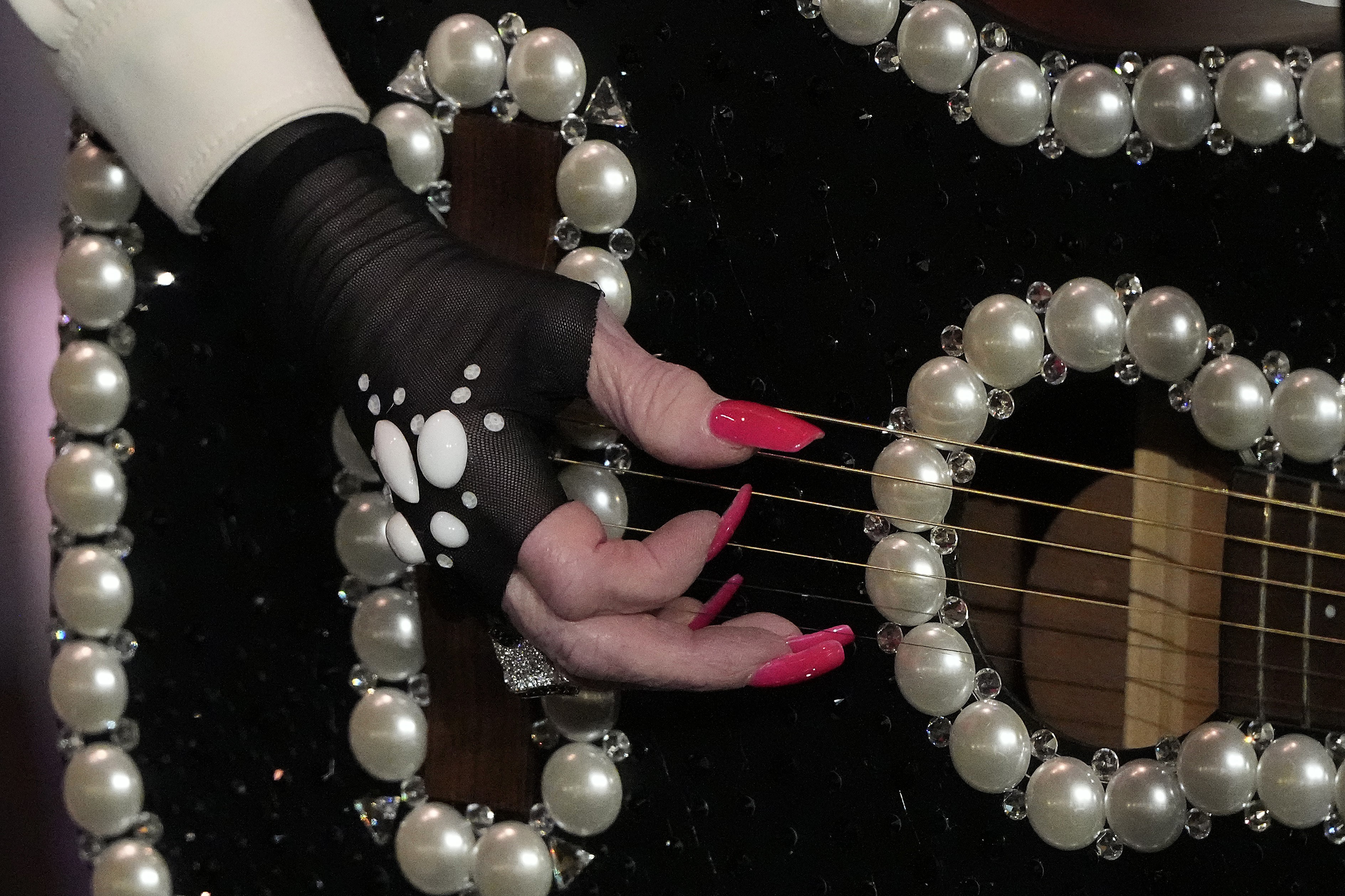 Dolly Parton performs during an event celebrating the statewide expansion of her Imagination Library, in Kansas City, Mo., August 27, 2024, (Photo by Charlie Riedel/AP Photo)