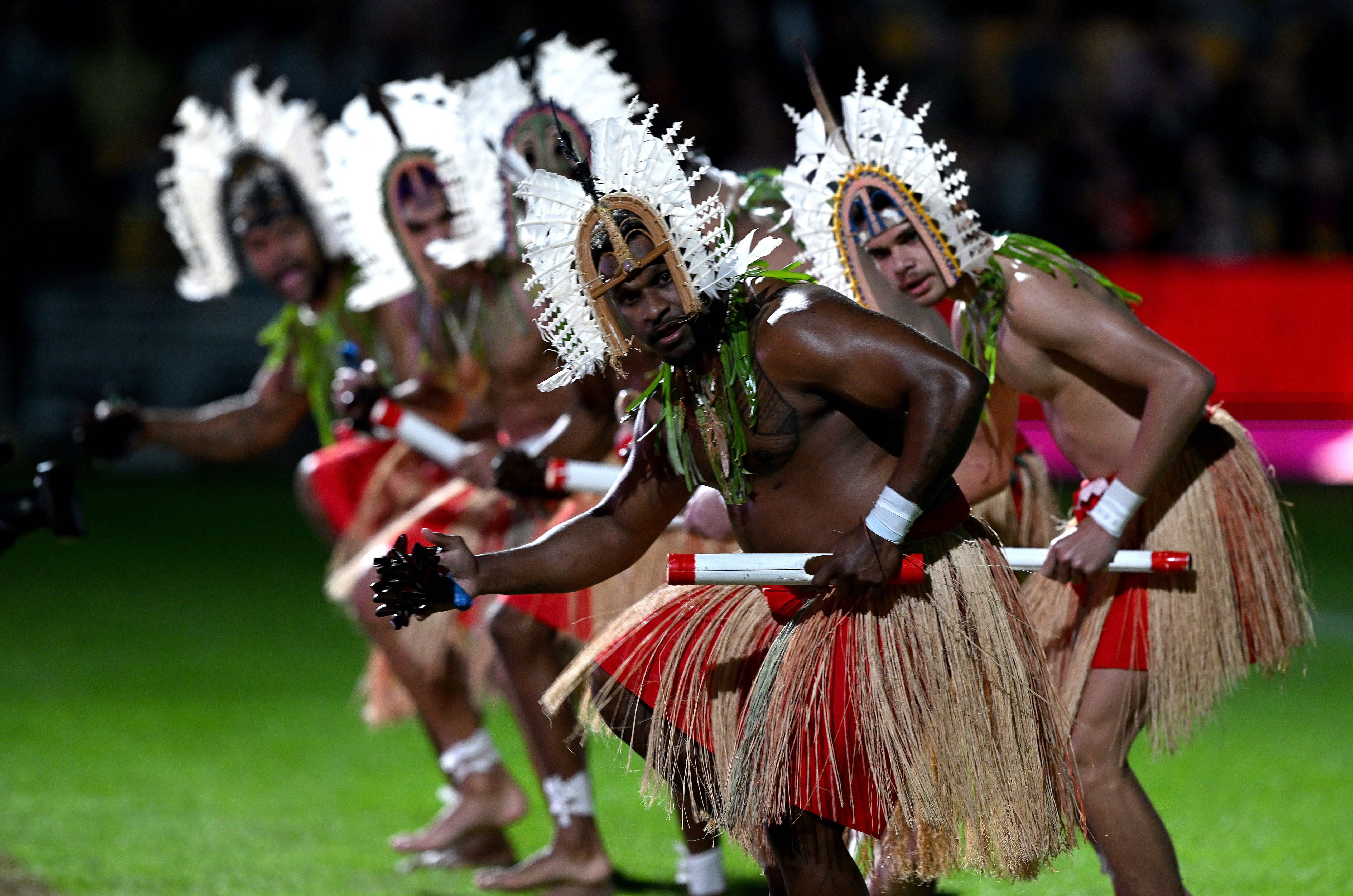 Indigenous Dancers perform before the round 12 NRL match between Brisbane Broncos and Penrith Panthers at Suncorp Stadium on May 18, 2023 in Brisbane, Australia. (Photo by Bradley Kanaris/Getty Images)