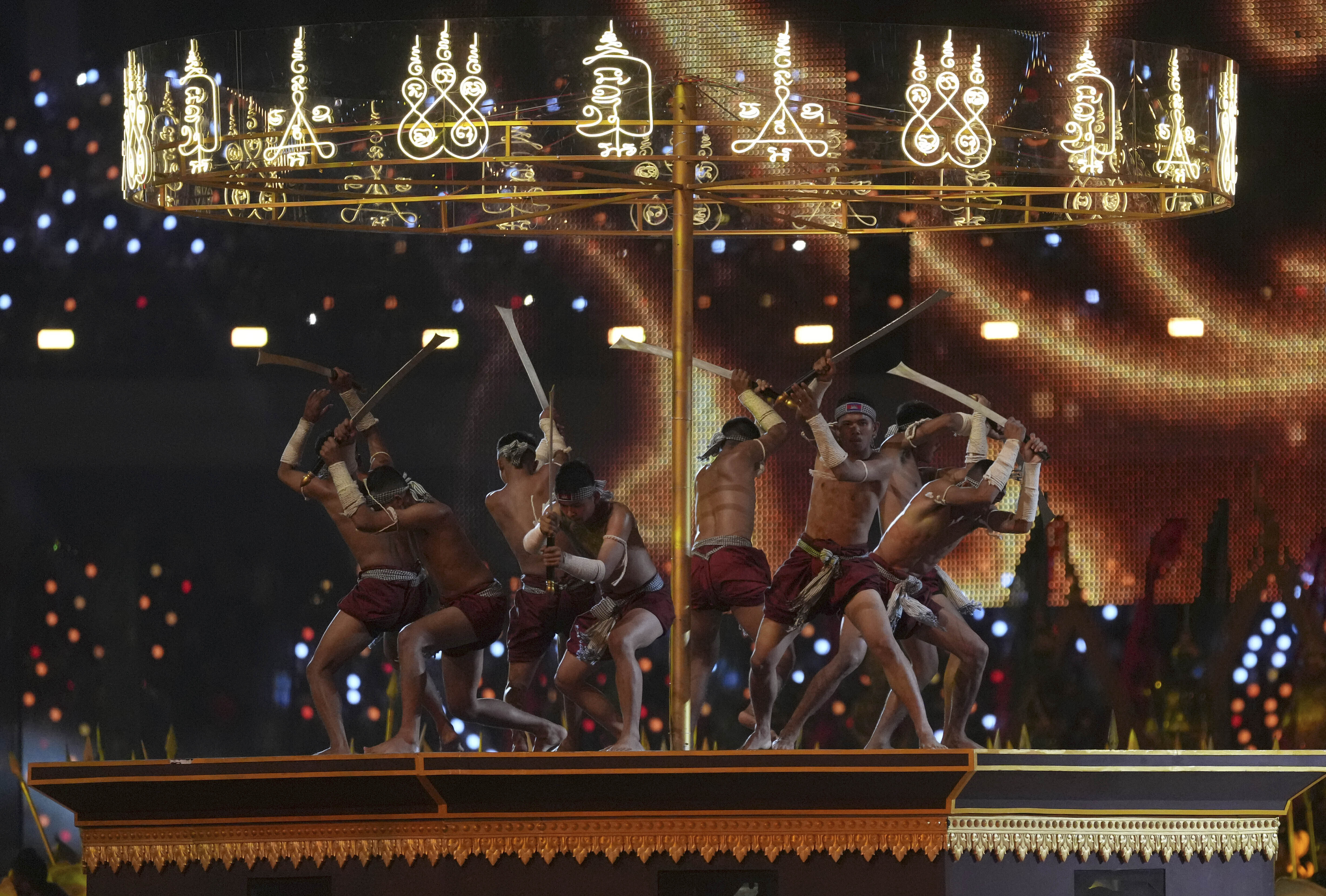 Dancers perform during the opening ceremony of the 32th South East Asian Games at the Morodok Techo National Stadium in Phnom Penh, Cambodia on Friday, May. 5, 2023. (Photo by Tatan Syuflana/AP Photo)