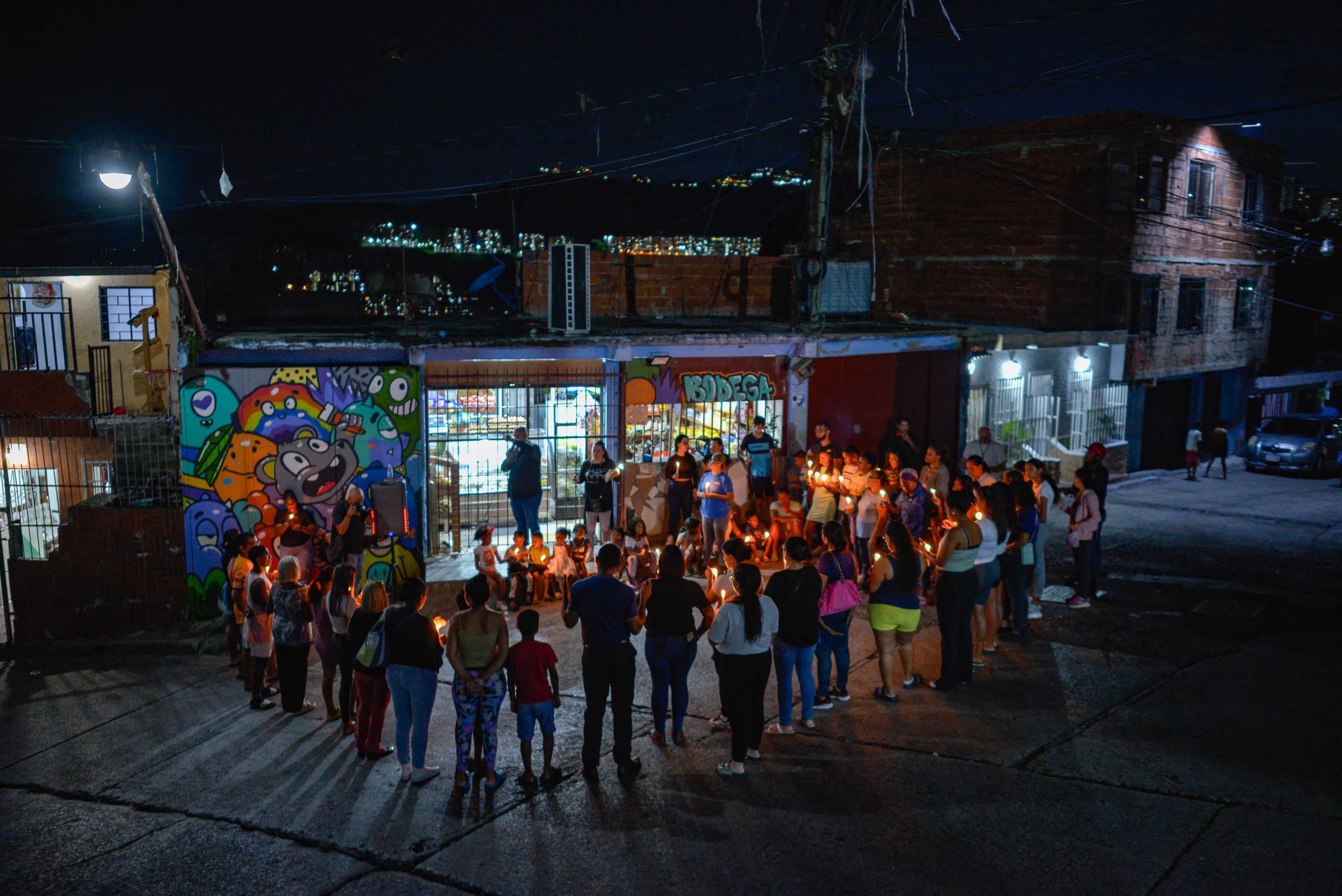 People gather during a vigil for “peace” and “unity” after the disputed presidential elections, in San Blas, Petare neighbourhood, Caracas on August 1, 2024. Venezuela's opposition leader Maria Corina Machado called for protests next August 3 to denounce the disputed reelection of President Nicolas Maduro, who was ratified on August 2, 2024 by the government-aligned National Electoral Council as the victor. (Photo by Juan Calero/AFP Photo)