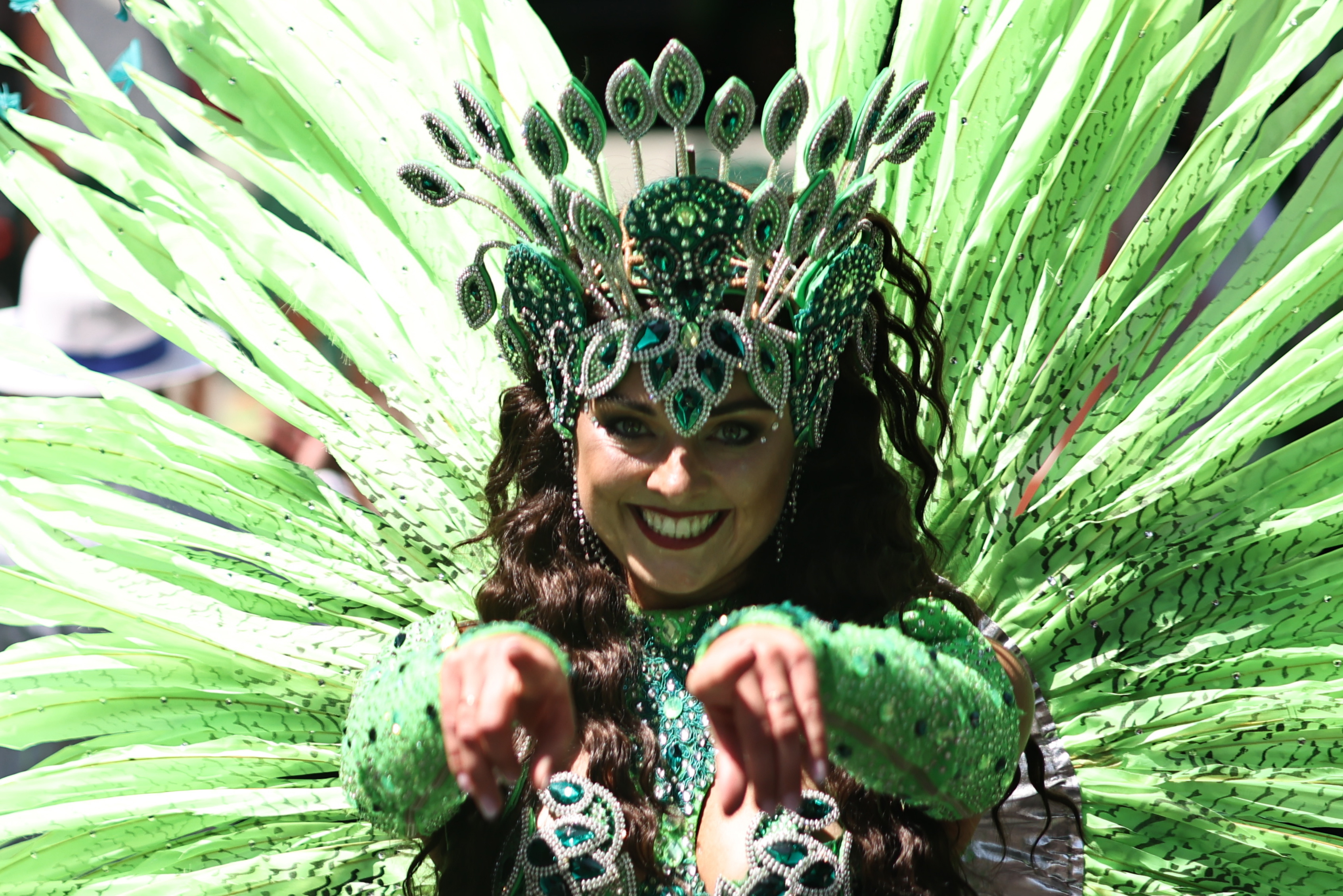 A dancer performs during the carnival of cultures in Berlin, Germany, 28 May 2023. Due to a three year break, caused by the coronavirus pandemic, the carnival of cultures celebrates its 25th anniversary this weekend. Various groups of different nationalities present dance and musical performances on moving floats. (Photo by Clemens Bilan/EPA)