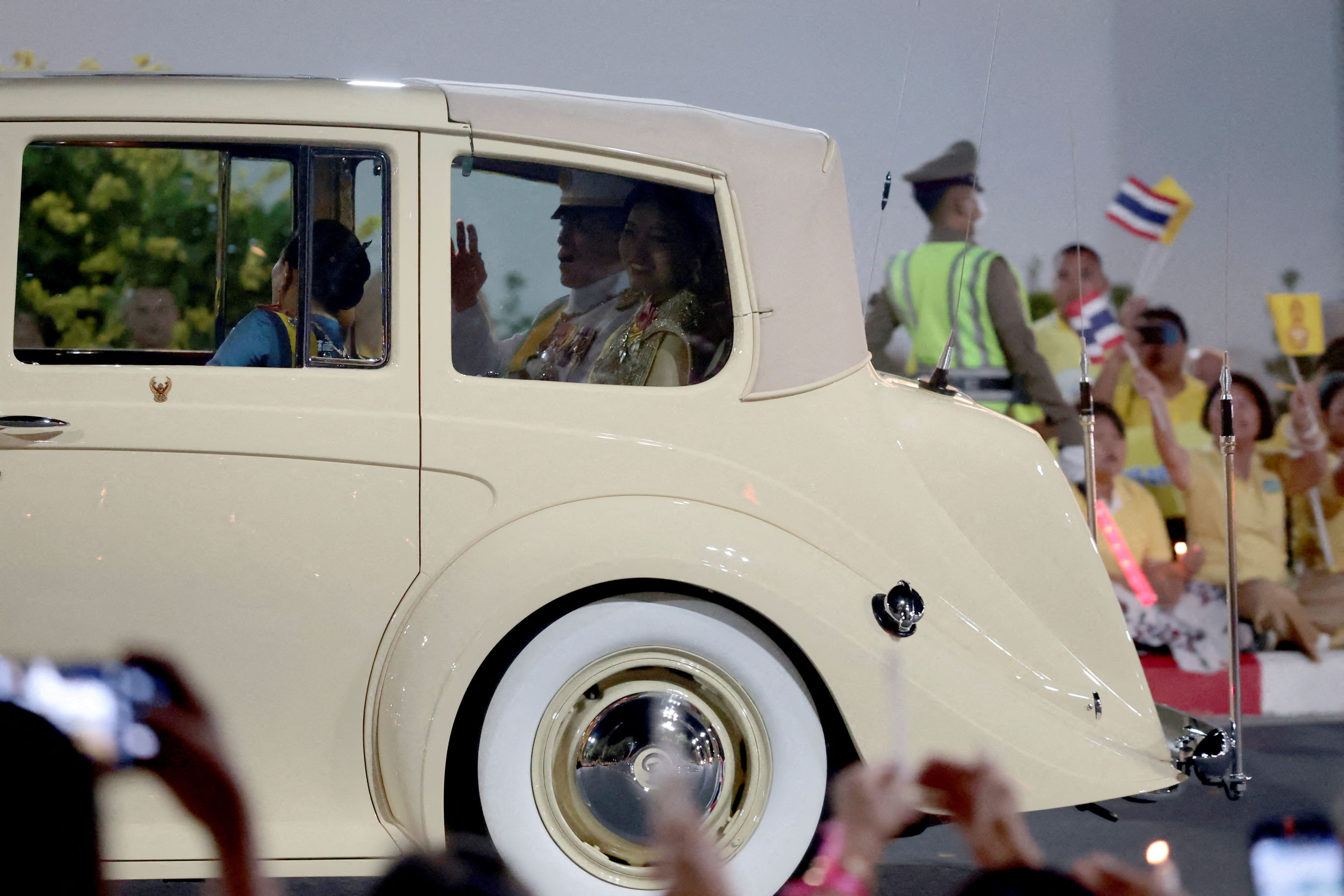 Thailand's King Maha Vajiralongkorn and Queen Suthida leave the Grand Palace after a religious ceremony to mark his 72nd birthday in Bangkok, Thailand on July 28, 2024. (Photo by Patipat Janthong/Reuters)