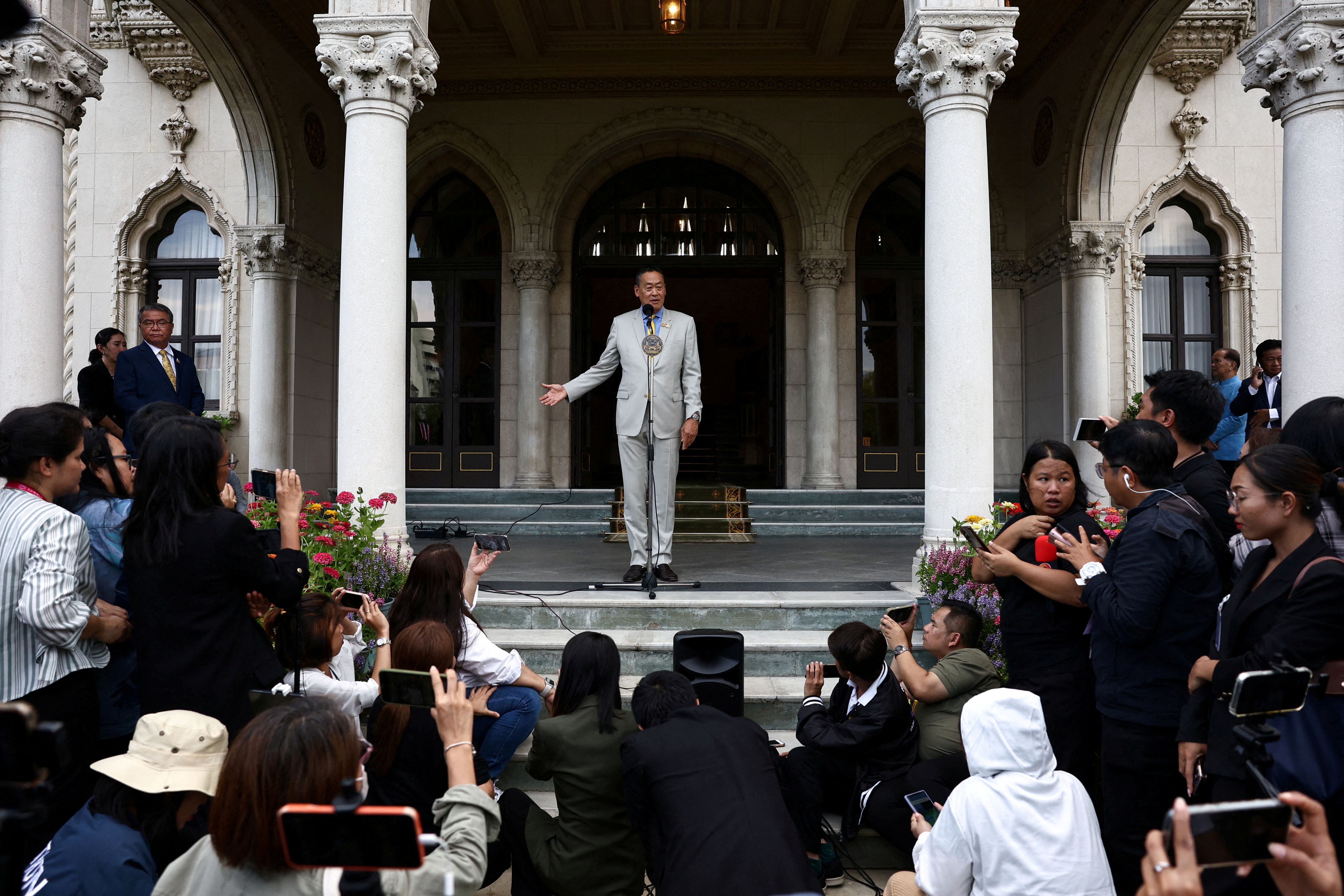 Recently dismissed Thailand's Prime Minister, Srettha Thavisin speaks to members of media after Thailand's Constitutional Court ruled on dismissal case at the Government House, in Bangkok, Thailand on August 14, 2024. (Photo by Chalinee Thirasupa/Reuters)