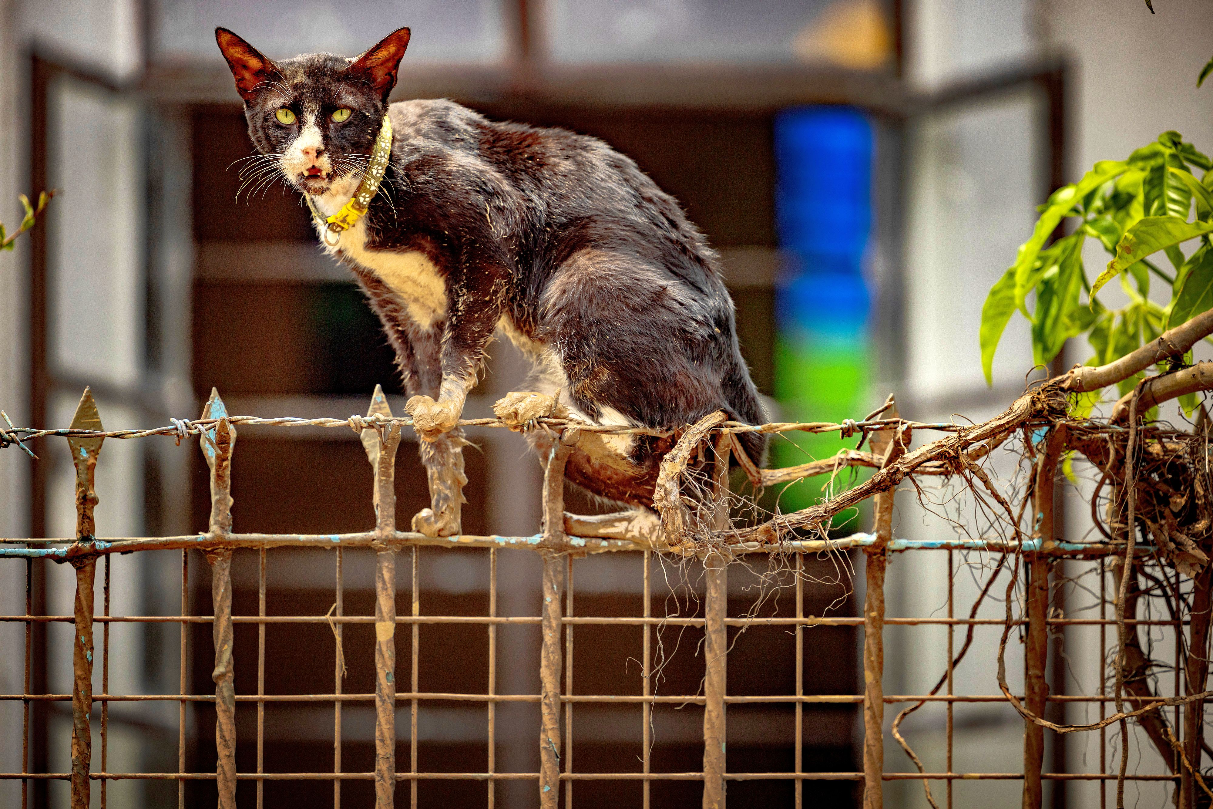 A muddied cat is seen after floodwaters brought about by Typhoon Gaemi receded on July 25, 2024 in Marikina, Metro Manila, Philippines. (Photo by Ezra Acayan/Getty Images)