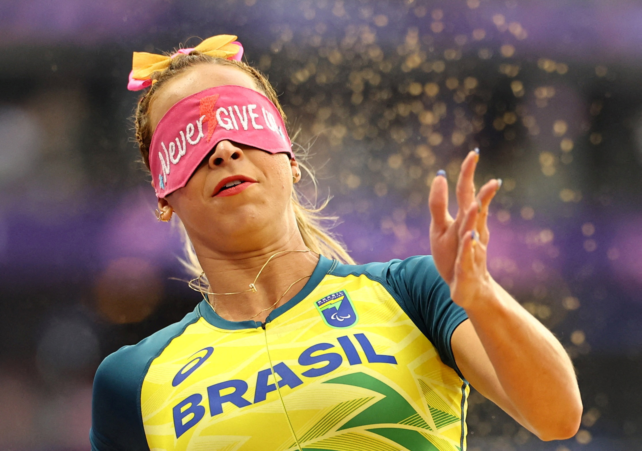 Lorena Silva Spoladore of Brazil in action during women's long jump T11 final in Saint-Denis, France on August 30, 2024. (Photo by Umit Bektas/Reuters)