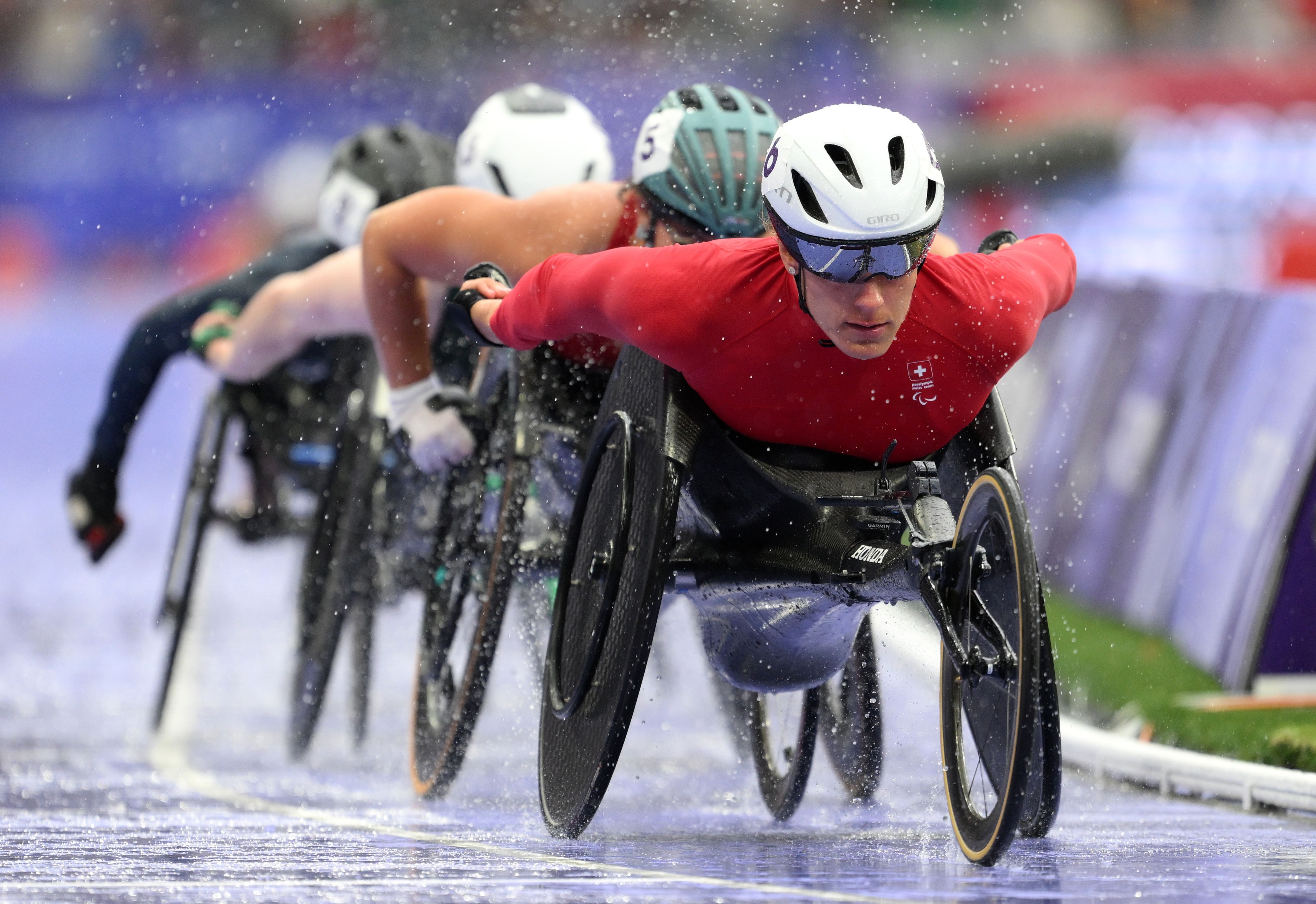 Catherine Debrunner of Team Switzerland competes in the Women's 5000m T54 Round 1 heat race on day two of the Paris 2024 Summer Paralympic Games at Stade de France on August 30, 2024 in Paris, France. (Photo by David Ramos/Getty Images)