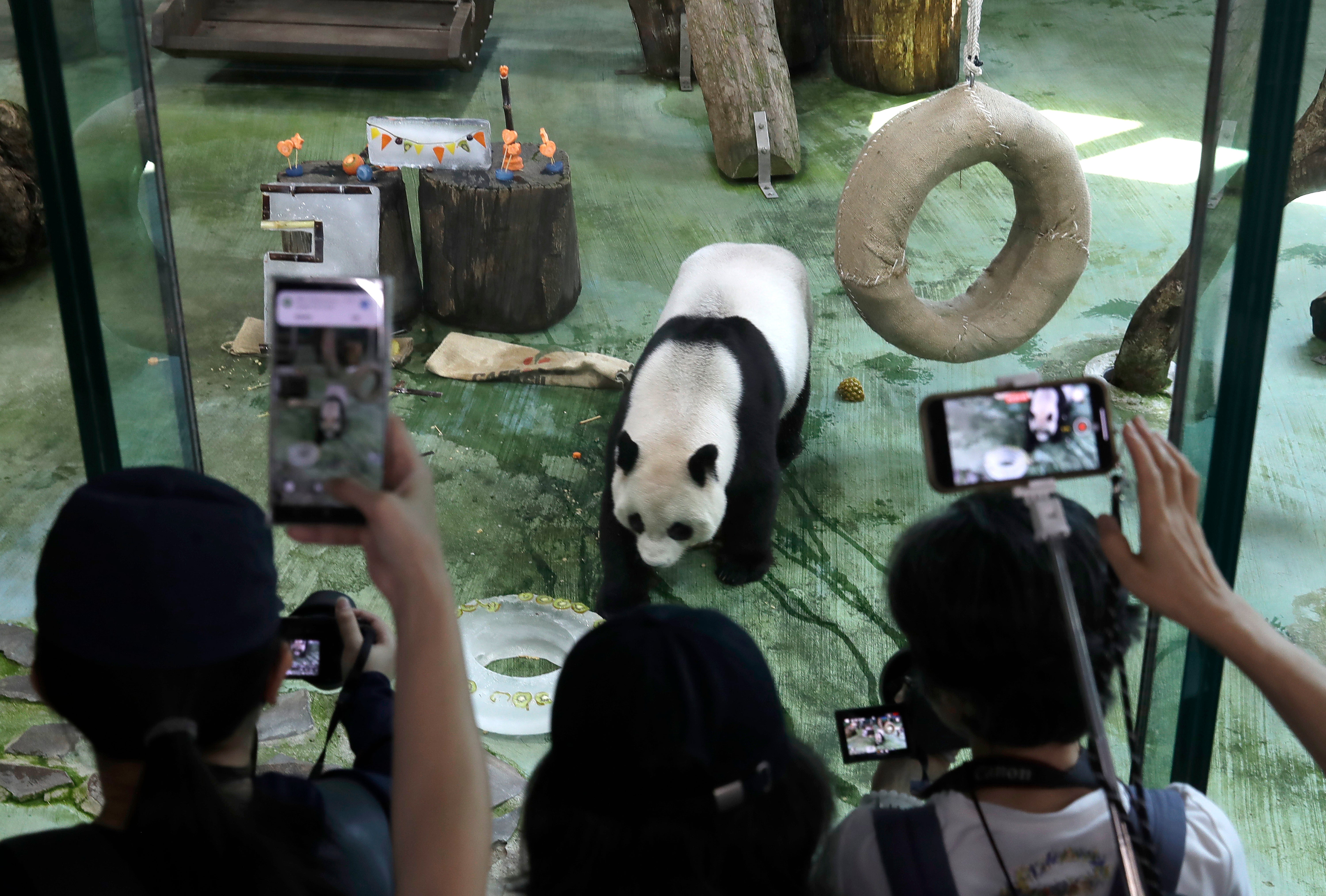 People take photos during Panda Yuanyuan's 20-years-old birthday party at the Taipei Zoo in Taipei, Taiwan, Friday, August 30, 2024. Yuanyuan was a gift from China to mark warming ties with Taiwan in 2008. (Photo by Chiang Ying-ying/AP Photo)