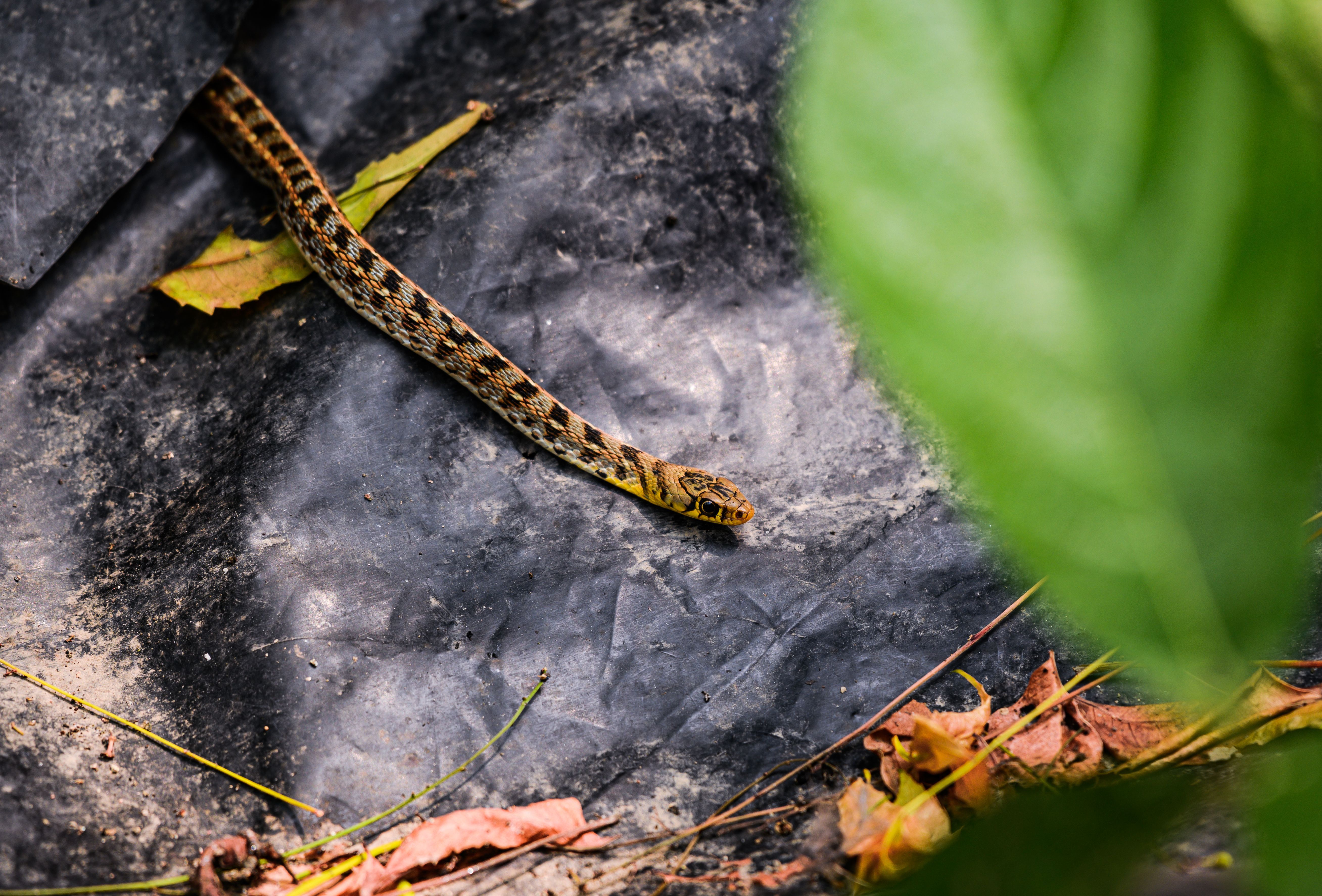 The buff striped keelback (Amphiesma stolatum) is a species of nonvenomous colubrid snake found across Asia. It is the sole species of the genus Amphiesma. It is a typically nonaggressive snake that feeds on frogs and toads. A buff striped keelback snake is sitting twisted rounder its body in the brick space at Tehatta, West Bengal, India on May 07, 2022. (Photo by Soumyabrata Roy/NurPhoto via Getty Images)