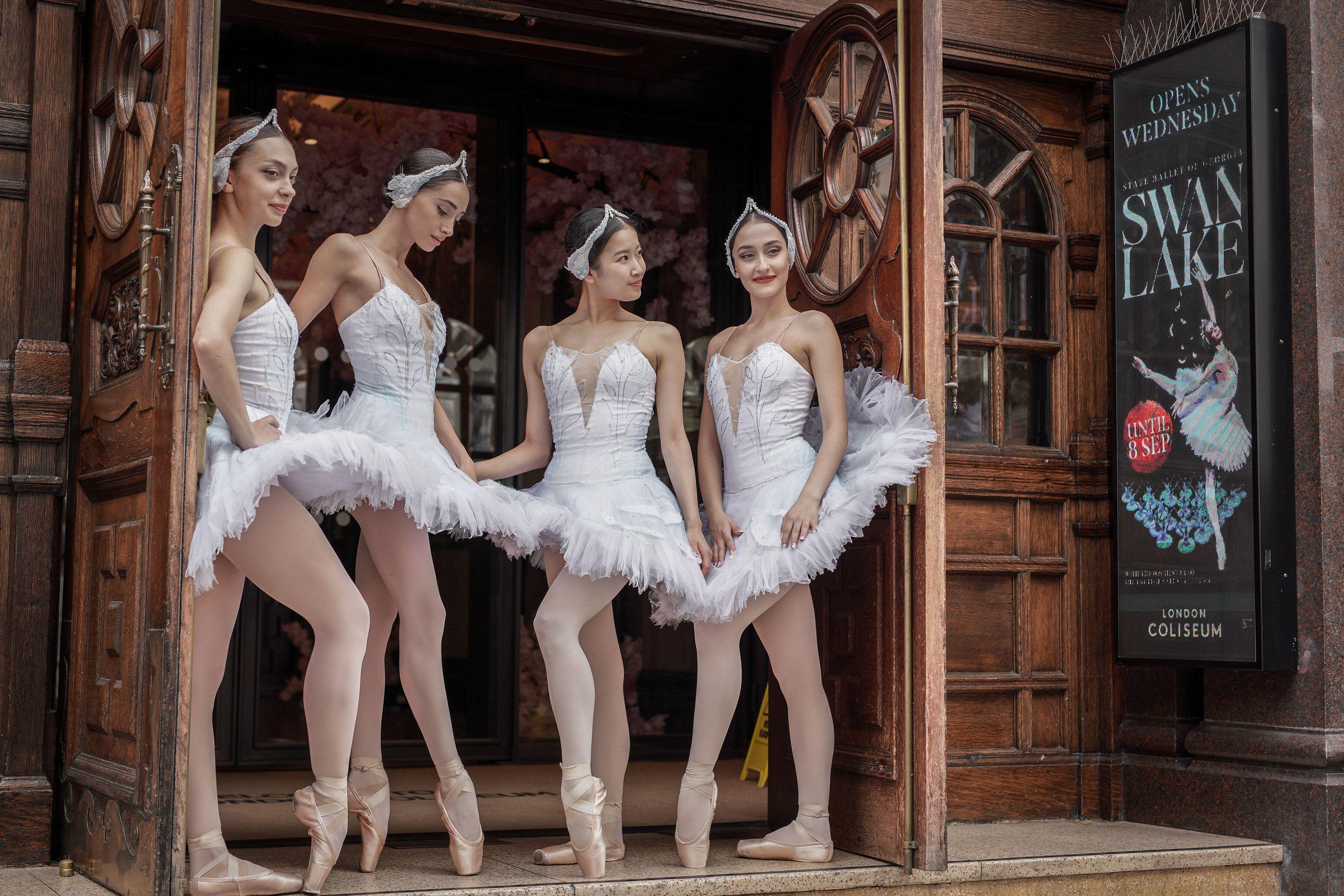 Swans from the state Ballet of Georgia production of Swan Lake arrive in London on August 27, 2024 ahead of opening night at London Coliseum venue on 28th August. (Photo by Guy Corbishley/Alamy Live News)