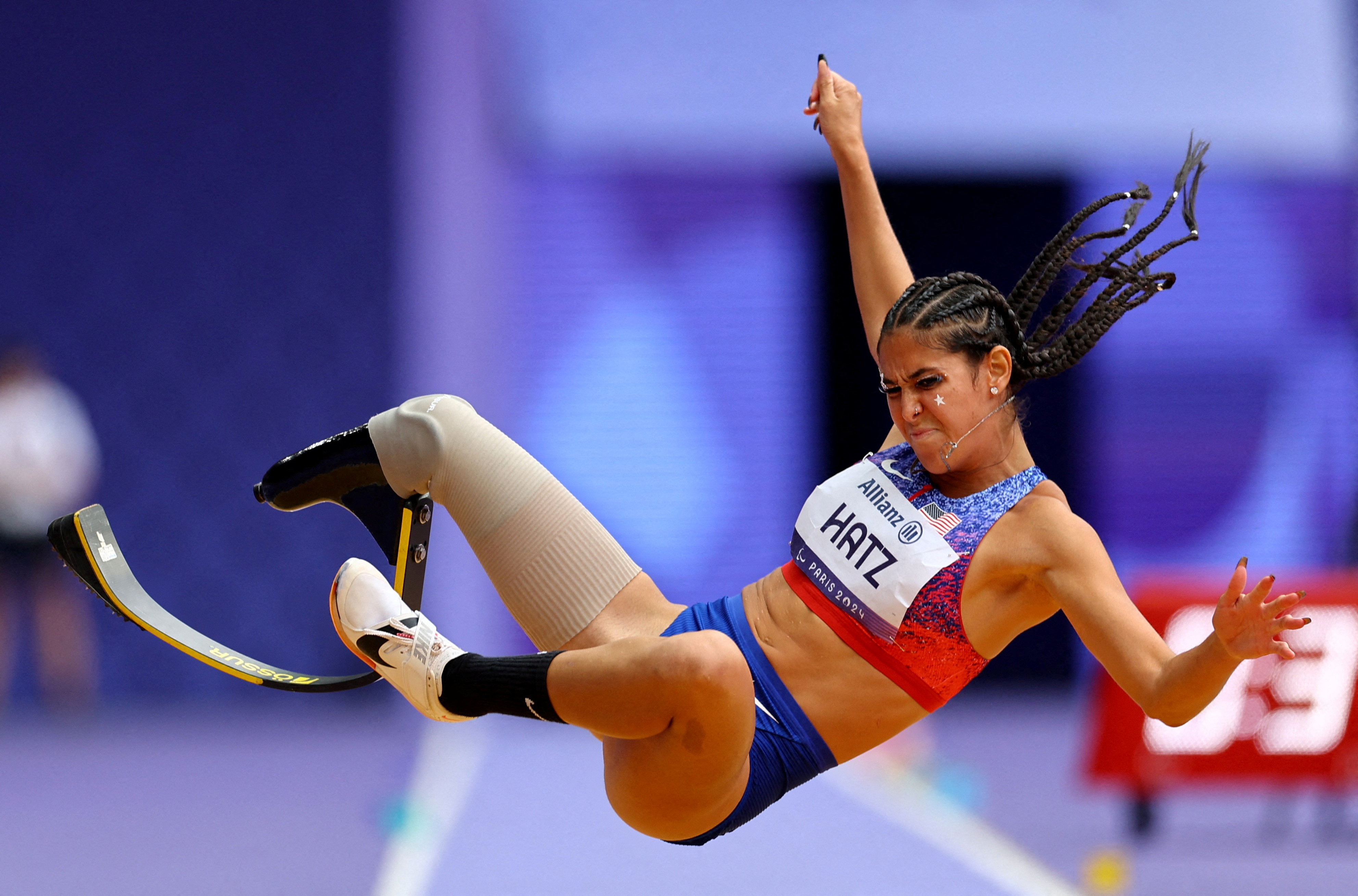 The USA’s Beatriz Hatz competes at Women's Long Jump -T64 final at the Stade de France stadium, during the 2024 Paralympics, Saturday, August 31, 2024, in Paris, France. (Photo by Ümit Bektaş/Reuters)