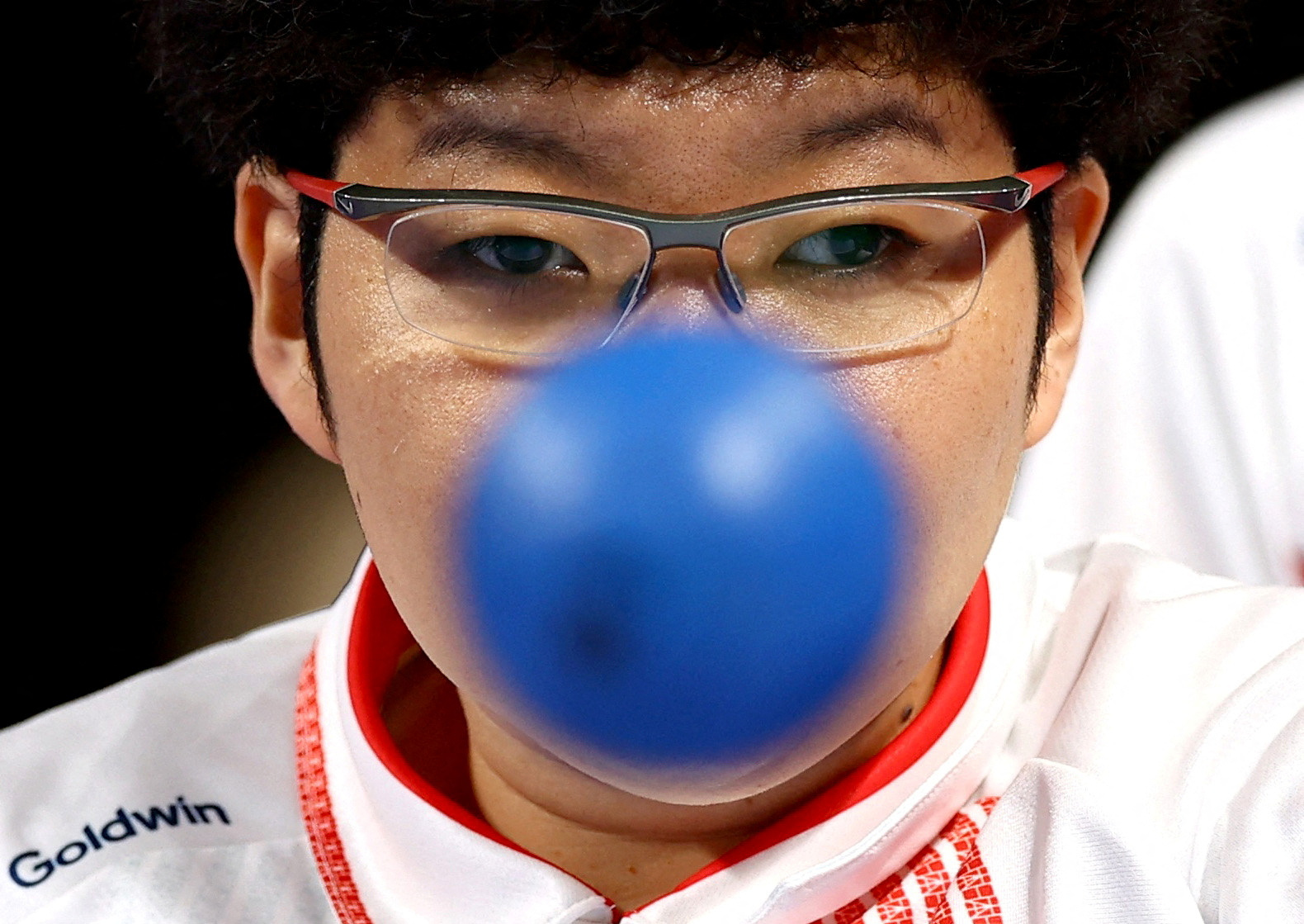 Hiromi Endo of Japan in action during her bronze medal match against Yushae Andrade of Bermuda in women's individual BC1 boccia bronze medal match in Paris, France on September 1, 2024. (Photo by Jeremy Lee/Reuters)
