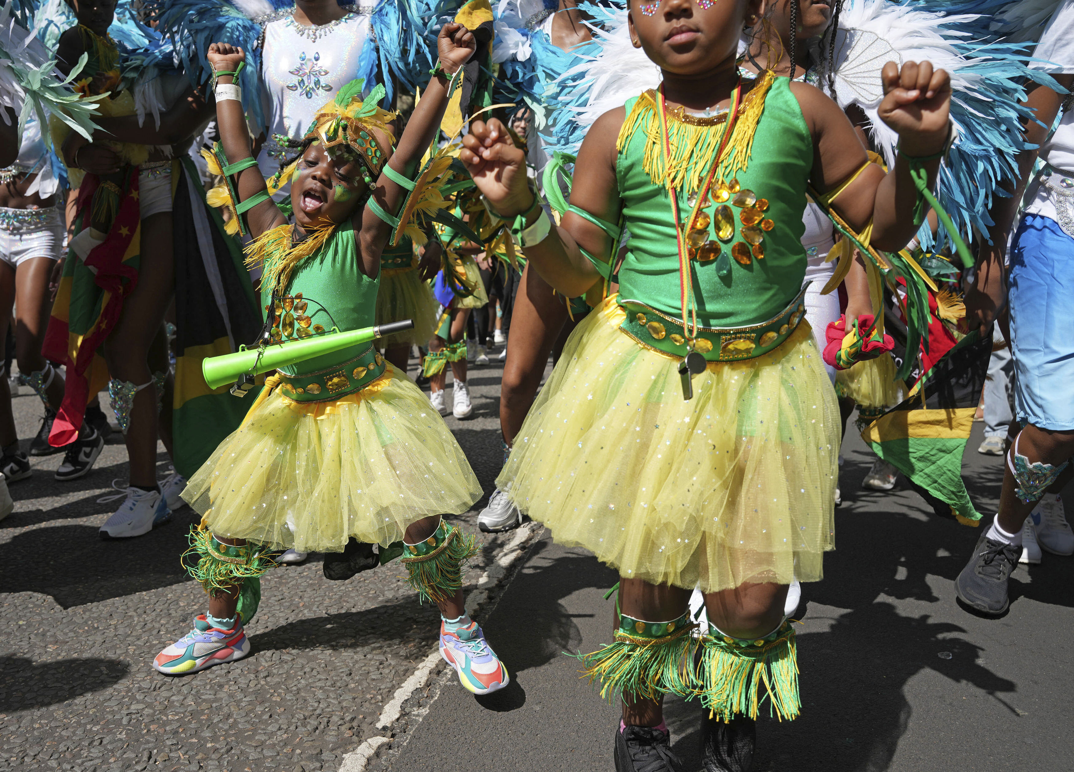 Participants taking part in the Children's Day Parade, part of the Notting Hill Carnival celebration in west London over the Summer Bank Holiday weekend on Sunday, August 25, 2024. (Photo by Jeff Moore/PA Images via Getty Images)