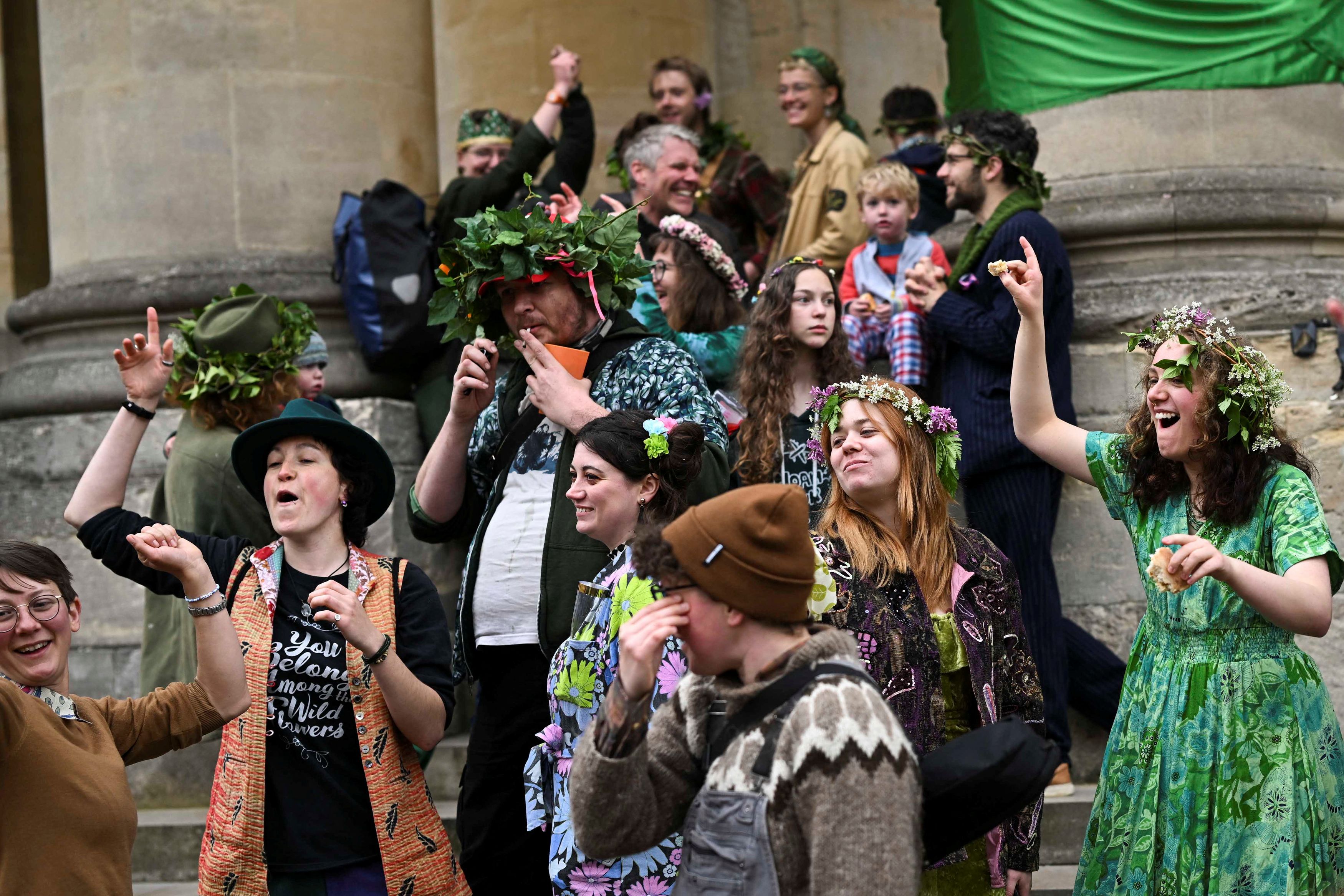 Revellers attend May Day celebrations, in Oxford, Britain on May 1, 2023. (Photo by Dylan Martinez/Reuters)
