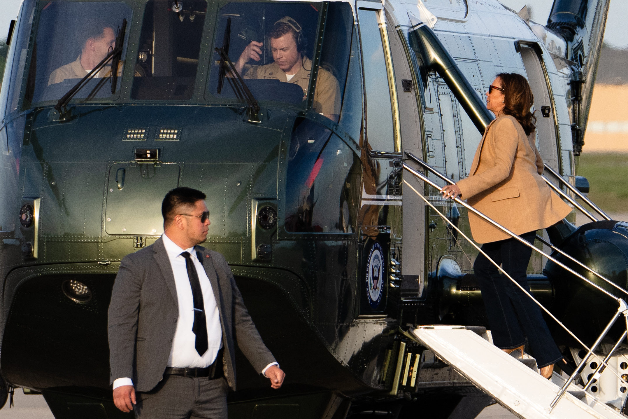 Vice President Kamala US Vice President and Democratic presidential candidate Kamala Harris walks to board a helicopter at Joint Base Andrews in Maryland on September 4, 2024. (Photo by Erin Schaff/Pool via AFP Photo)