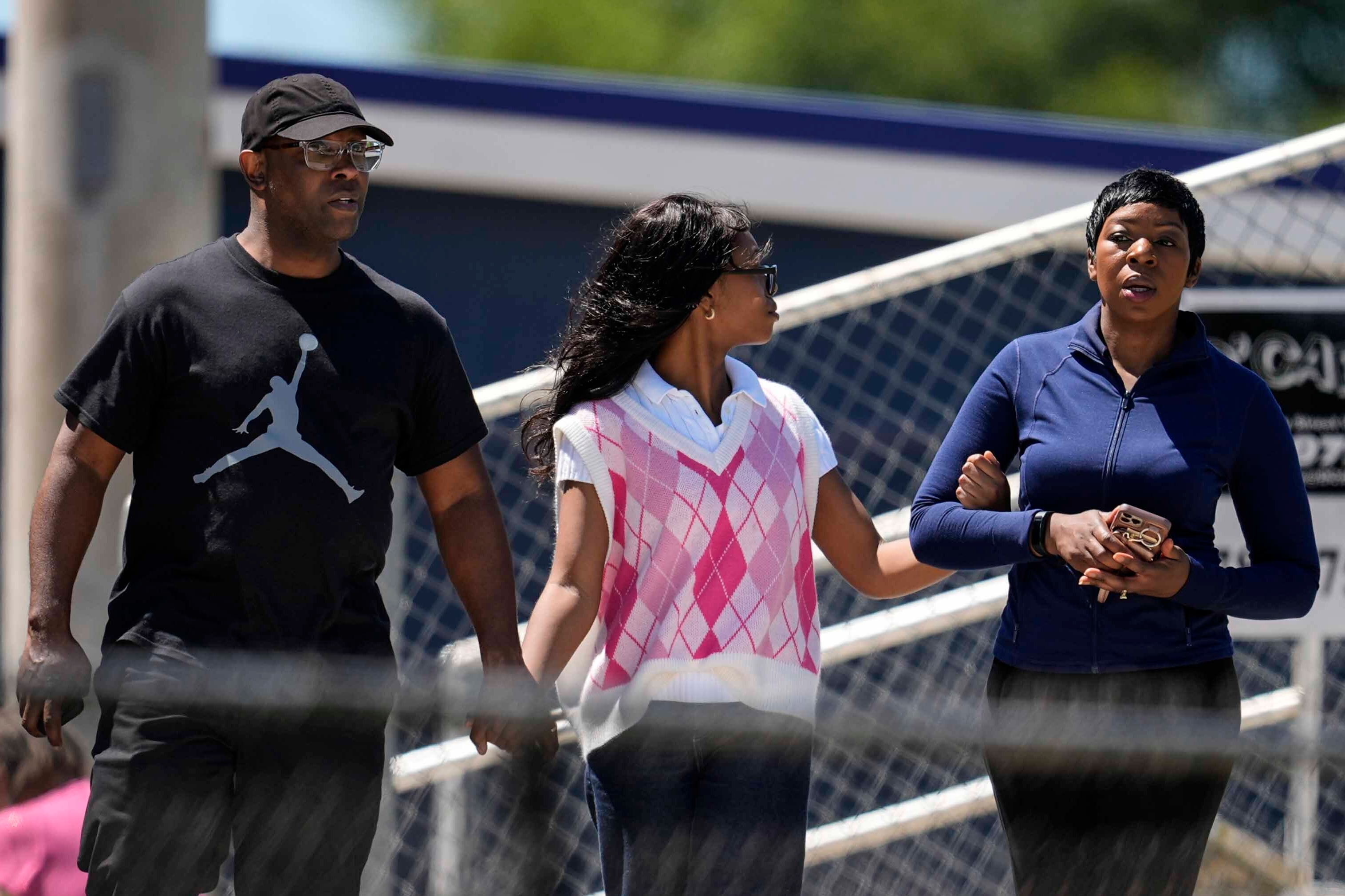 Parents walk their child out of Apalachee High School after a shooting at the school Wednesday, September 4, 2024, in Winder, Ga. (Photo by Mike Stewart/AP Photo)