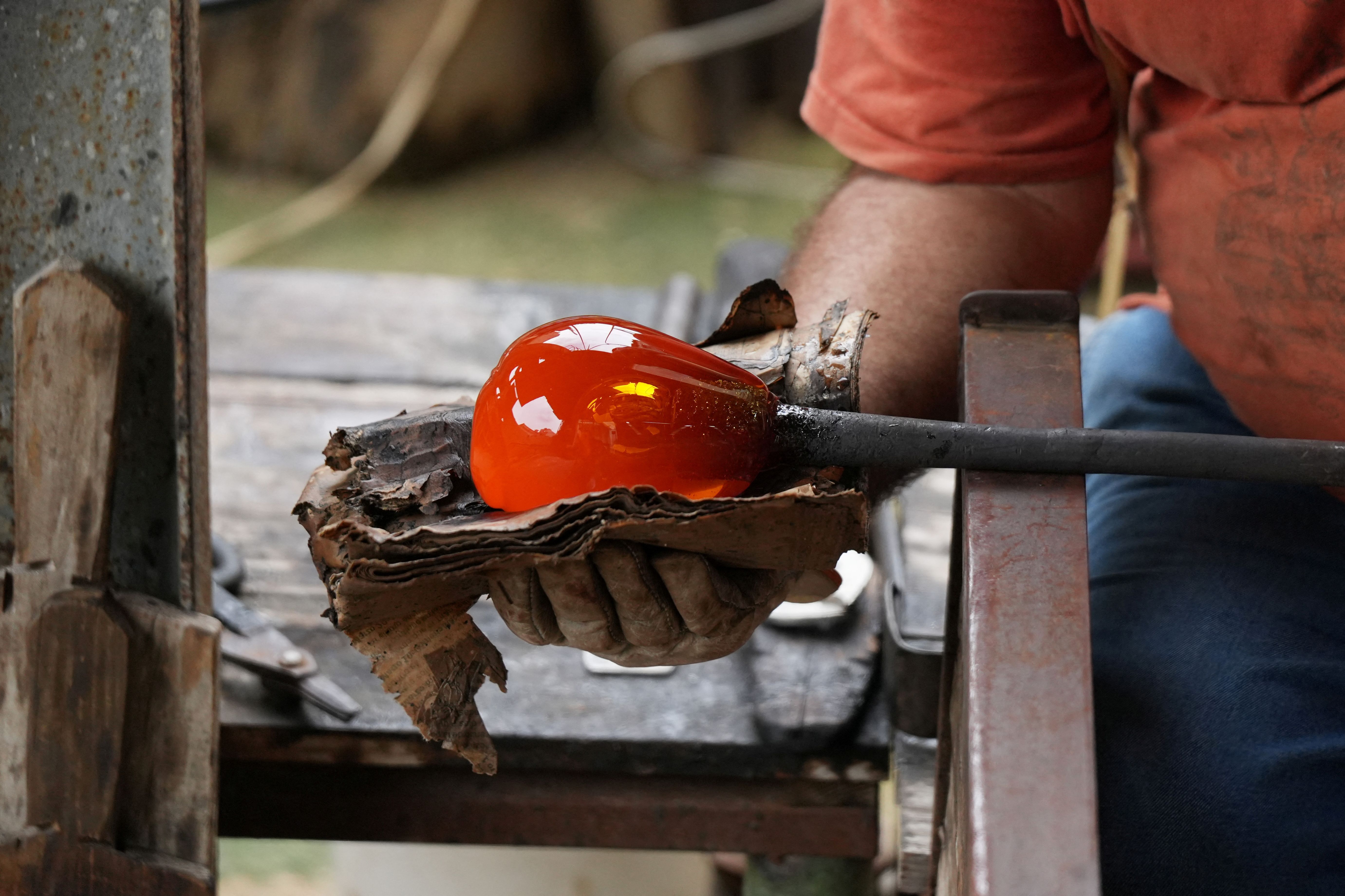 Glassmaker Eduardo Viciana works on molten glass in his atelier in Havana, Cuba, on June 21, 2024. (Photo by Alexandre Meneghini/Reuters)