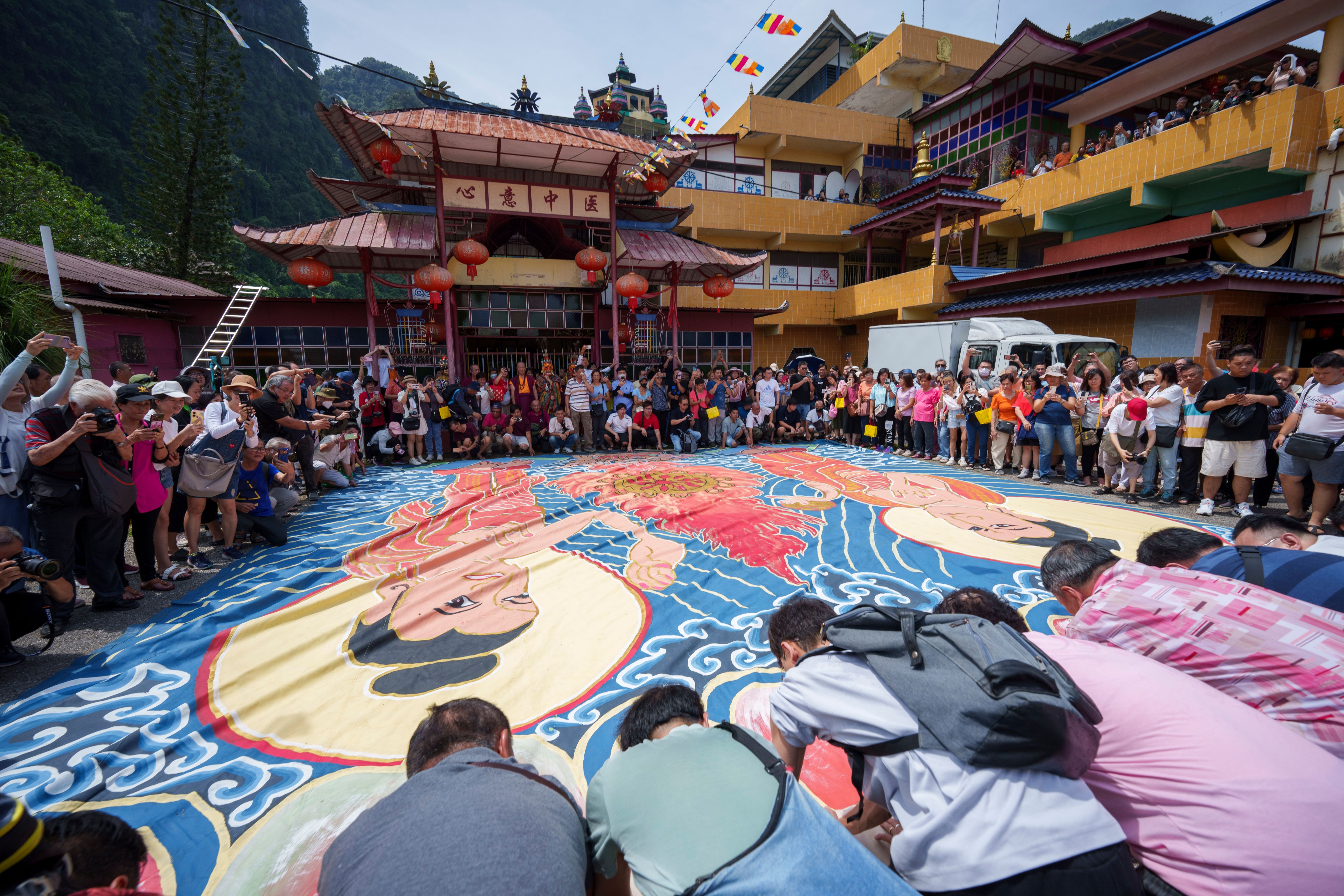 Devotees unveil a giant canvas of sacred “Thangka” measuring 60 meters (197 feet) by 12 meters (39 feet), under the sun during a Wesak day celebration in Ipoh, Malaysia, Wednesday, May 22, 2024. Wesak Day, one of the holiest days for Buddhists, offers an opportunity for all followers to come together and celebrate not only Buddha's birthday, but also his enlightenment and achievement of nirvana. (Photo by Vincent Thian/AP Photo)