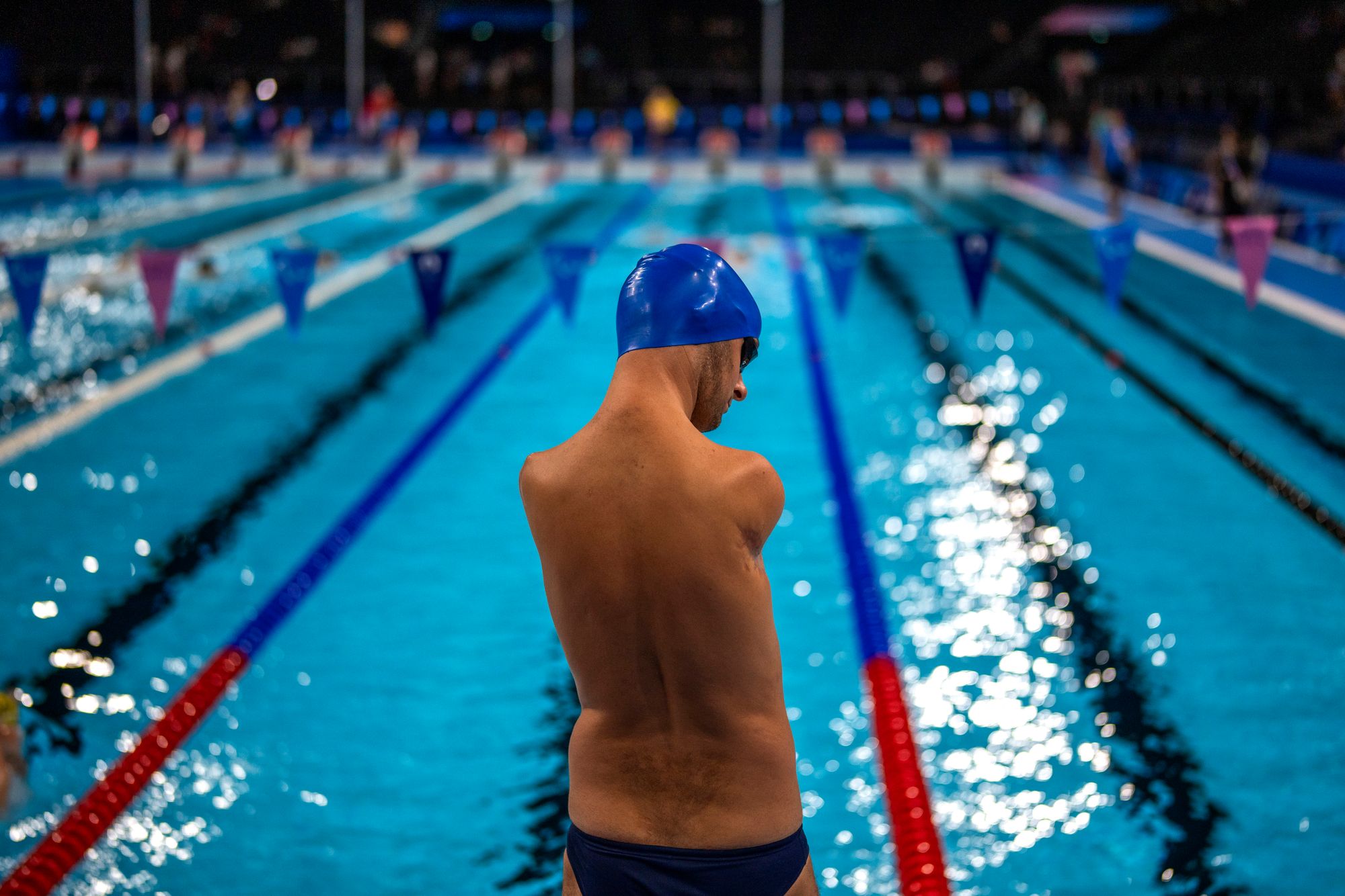 Paralympic athlete Yaroslav Semenenko, of Ukraine, stands next to the pool during a warm up session ahead of the competition, during the 2024 Paralympics, Monday, September 2, 2024, in Paris, France. (Photo by Emilio Morenatti/AP Photo)