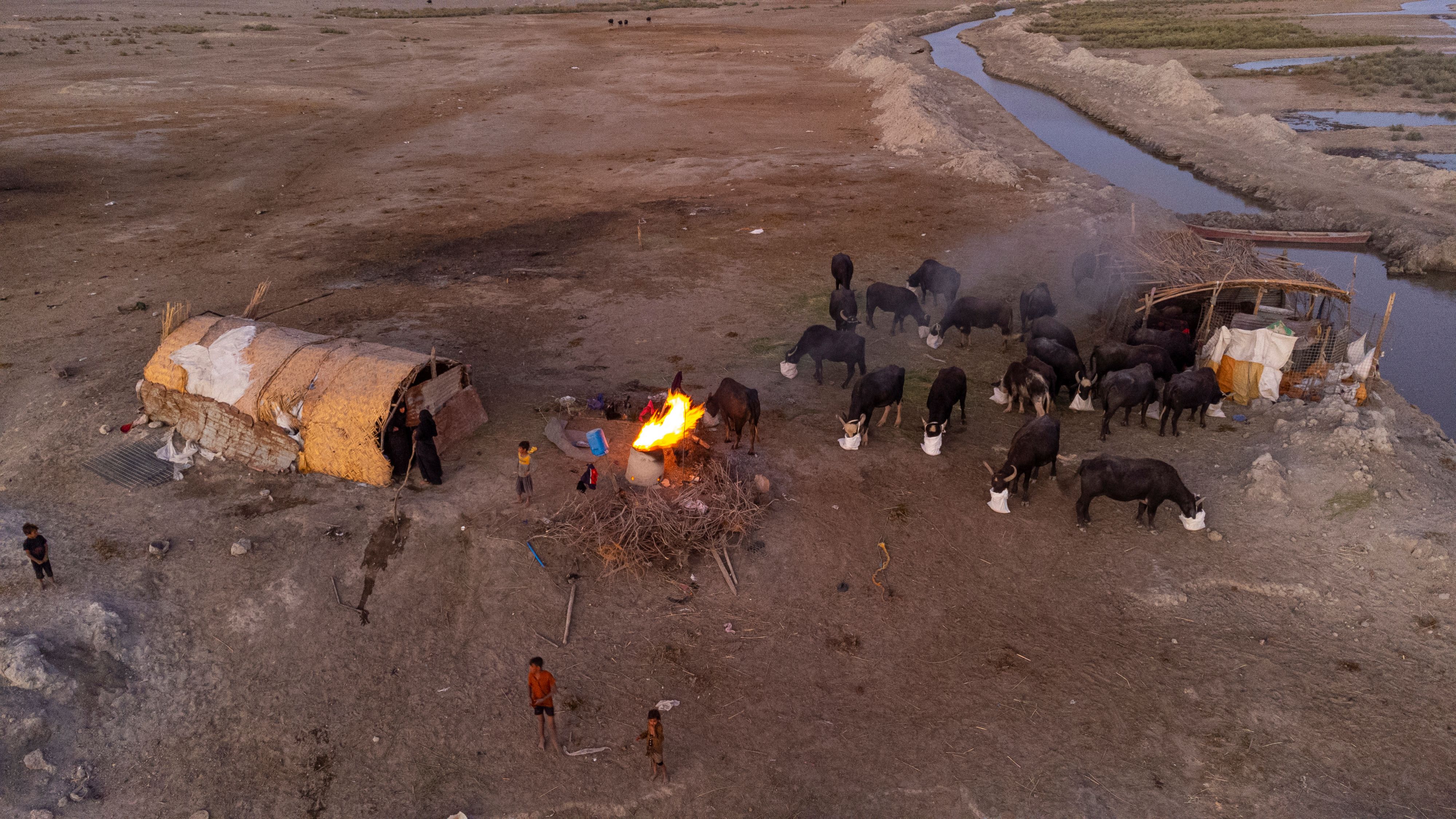 An aerial view of a woman bakes bread at Iraq's southern Chibayish marshes in Nasiriyah, Iraq, Friday, September 6. 2024. Deep within Iraq's celebrated marsh lands, conservationists are sounding alarm bells and issuing a stark warning: Without quick action, the UNESCO protected site could all but wither away. (Photo by Hadi Mizban/AP Photo)